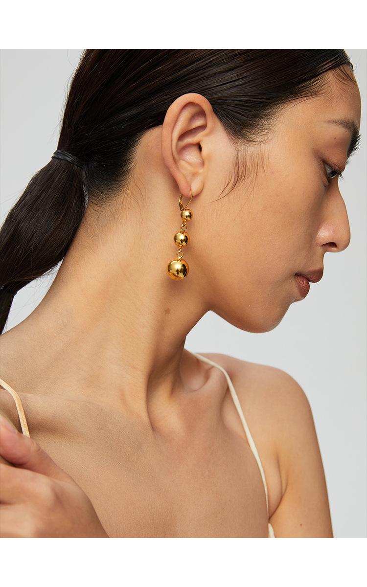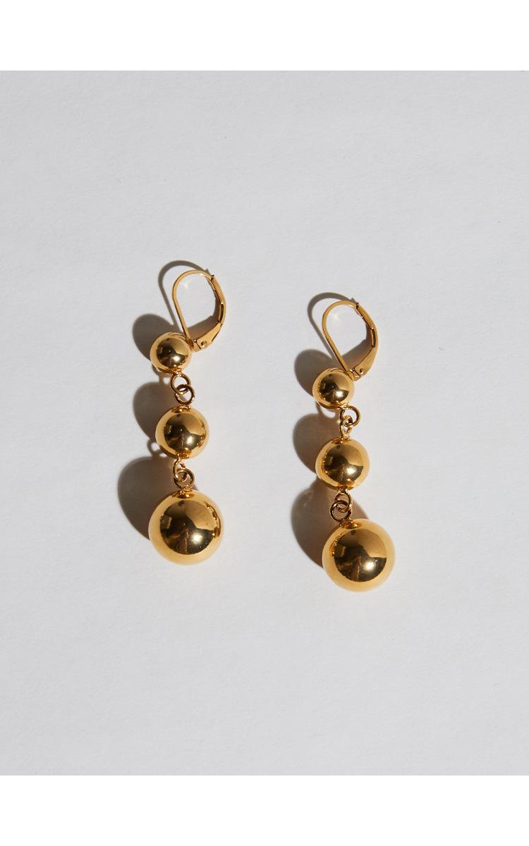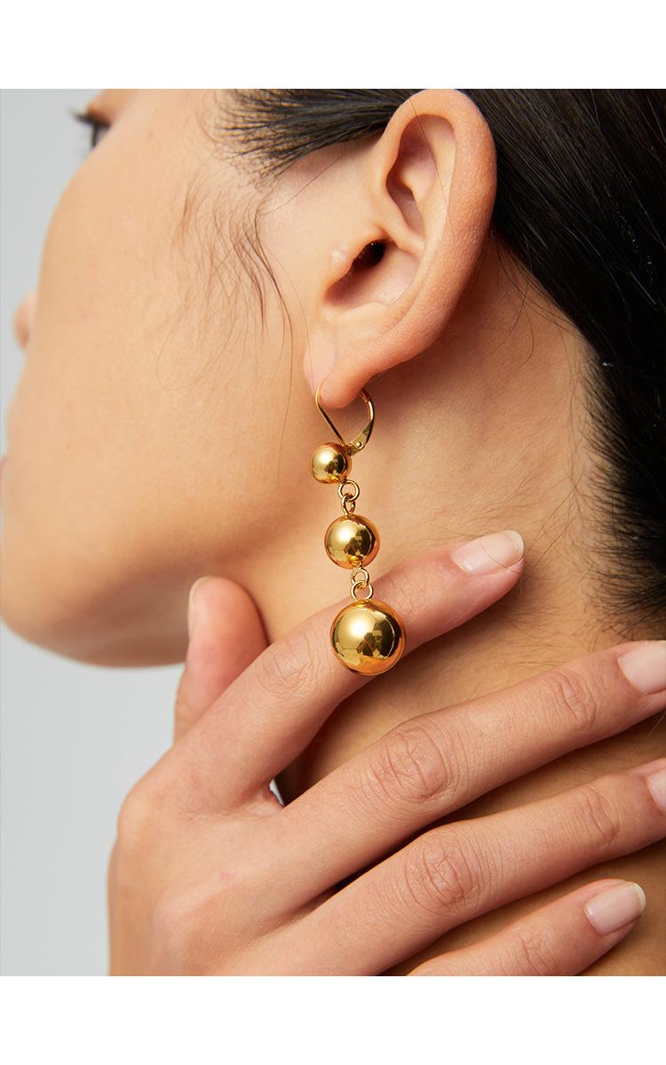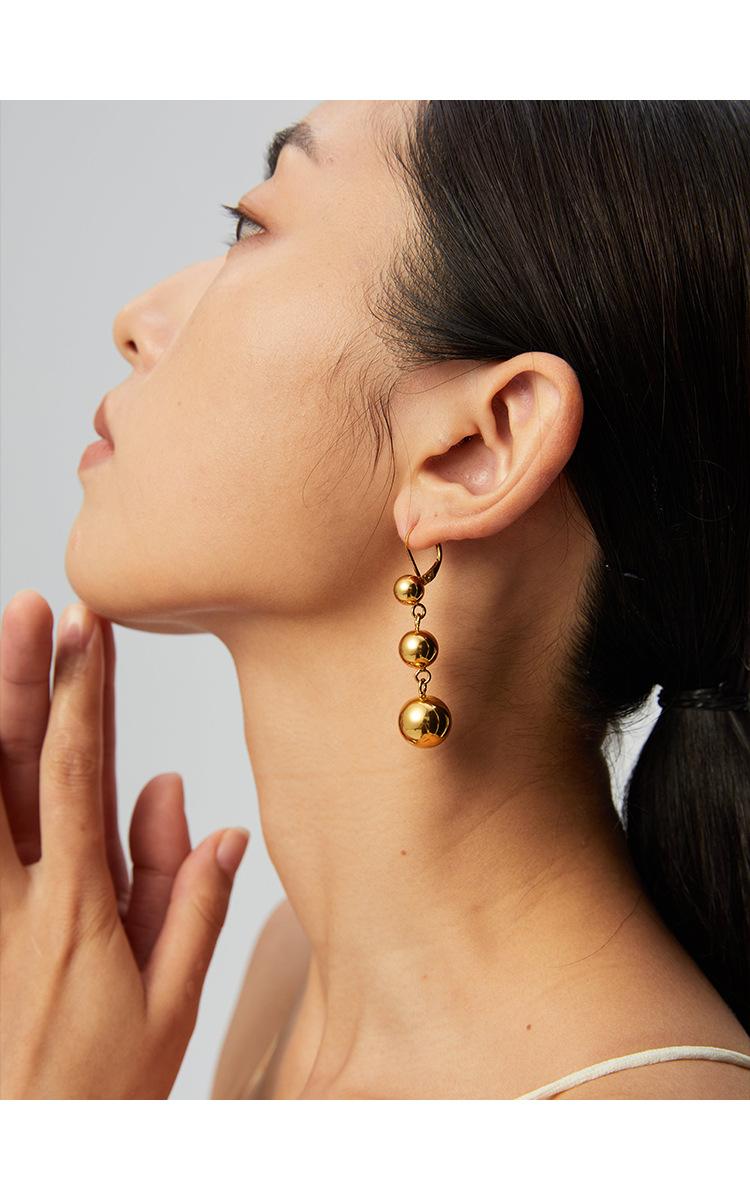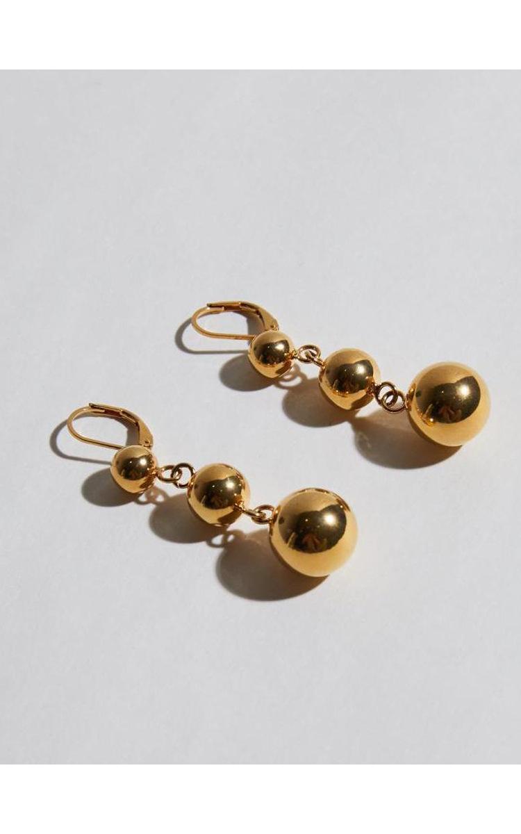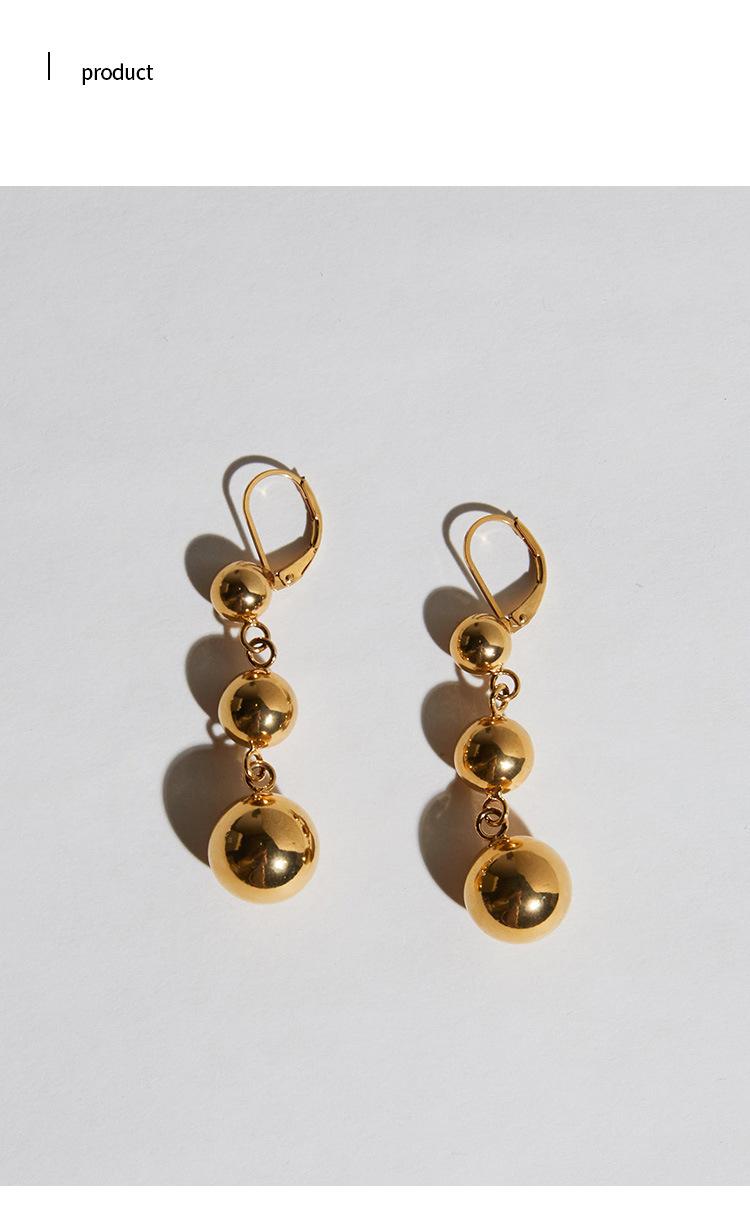 Compre Estilo francês simples moda brincos vintage dourados três pingente bola redonda de ouro em brincos estilo frio para as mulheres no atacado no Joom.pro