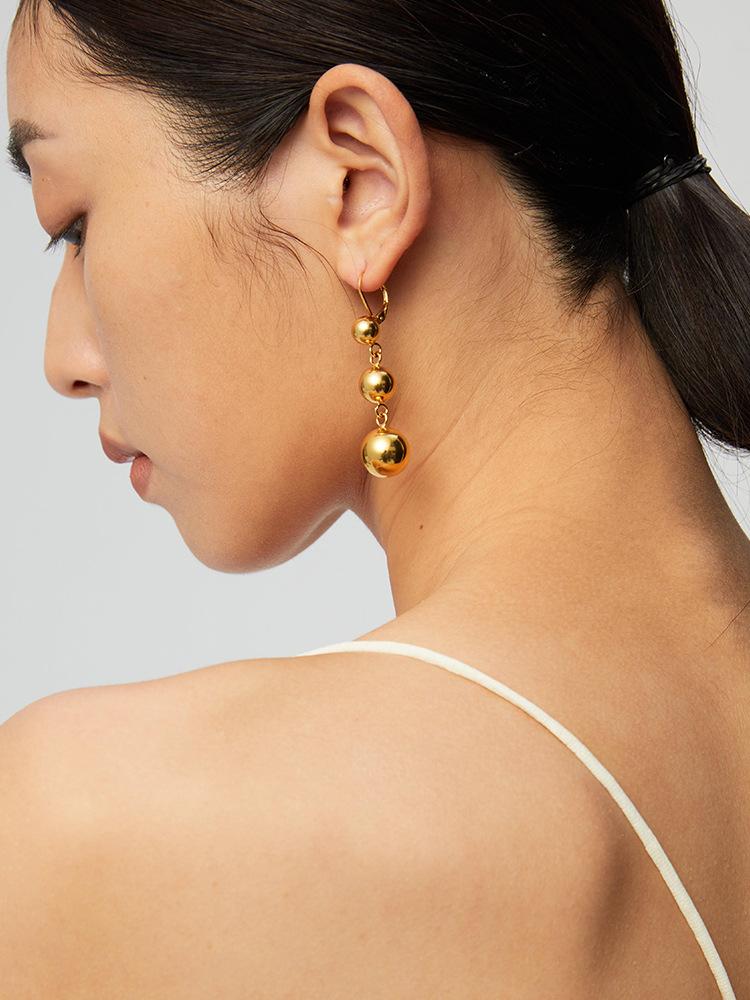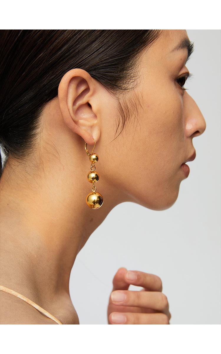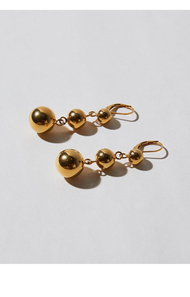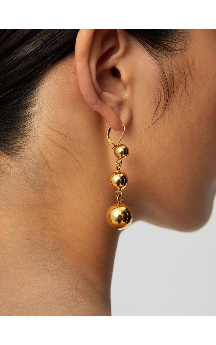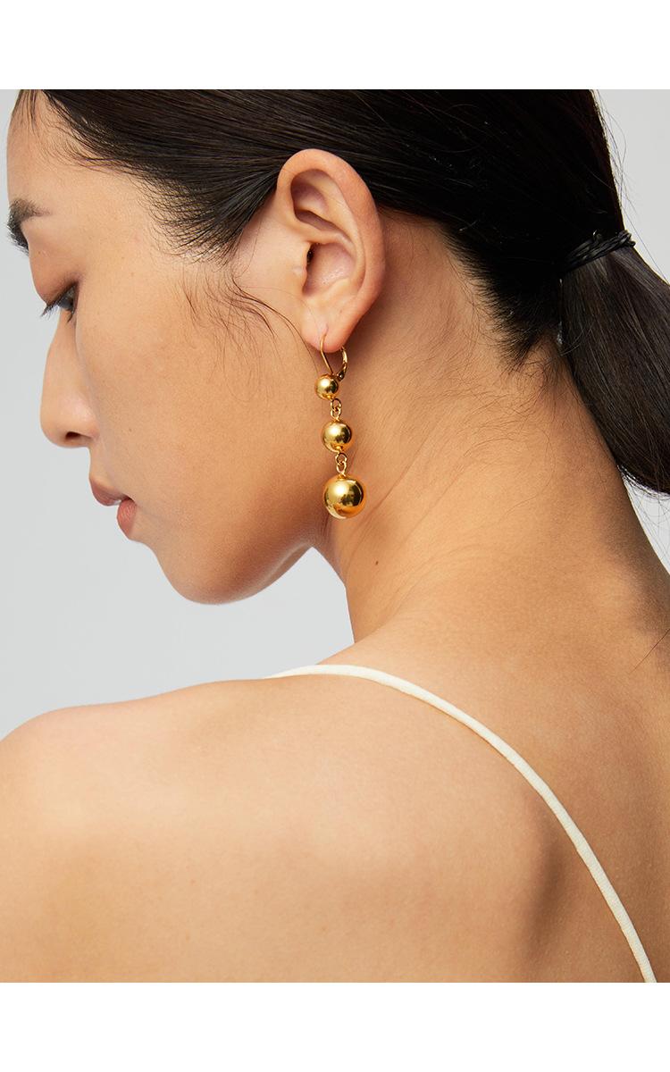 Compre Estilo francês simples moda brincos vintage dourados três pingente bola redonda de ouro em brincos estilo frio para as mulheres no atacado no Joom.pro