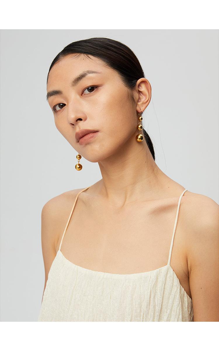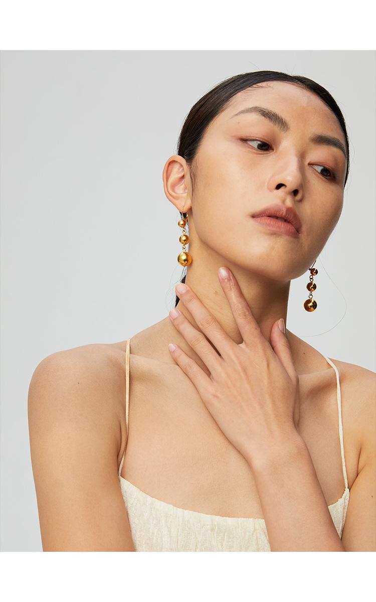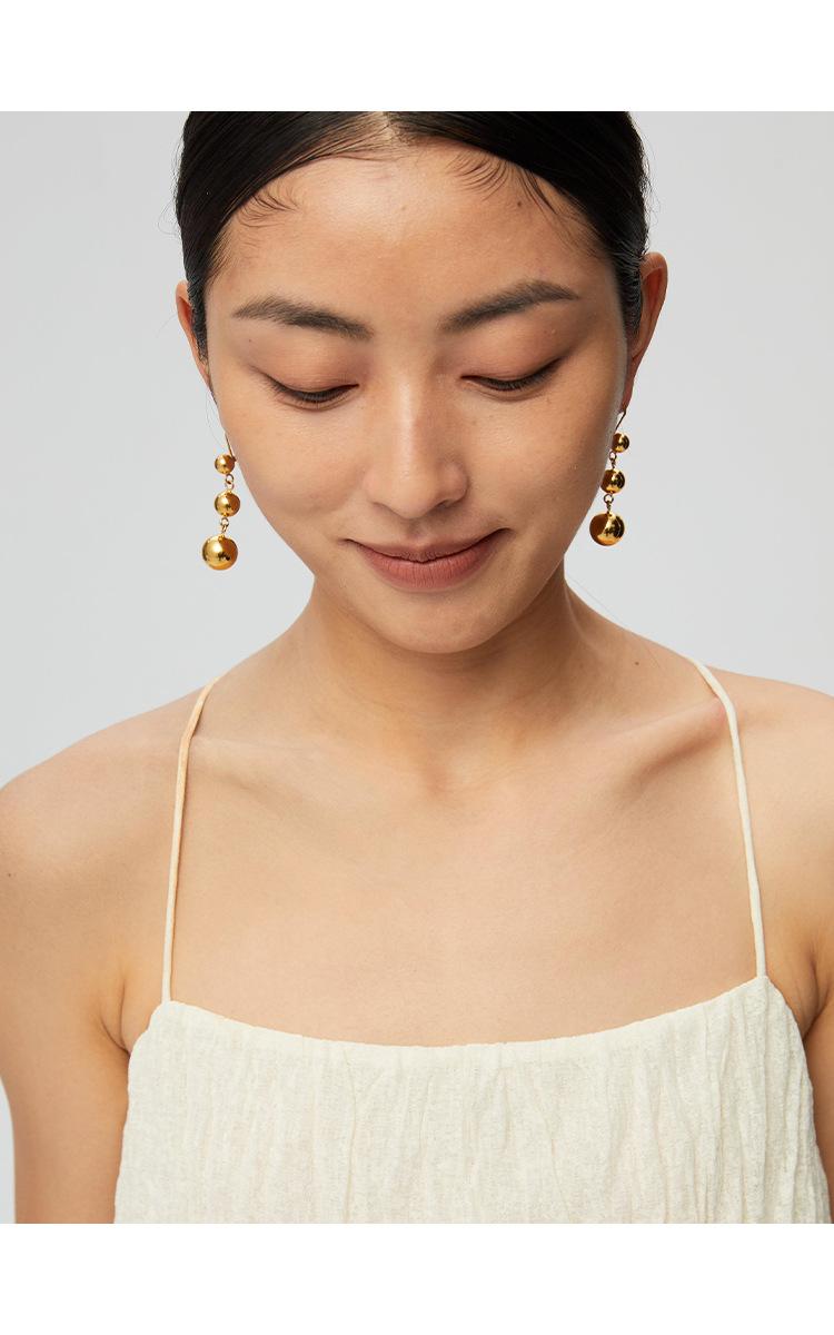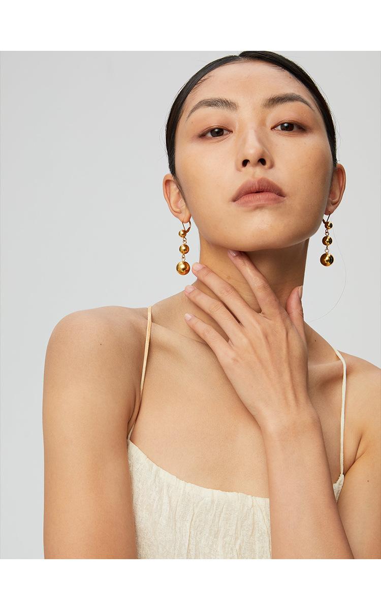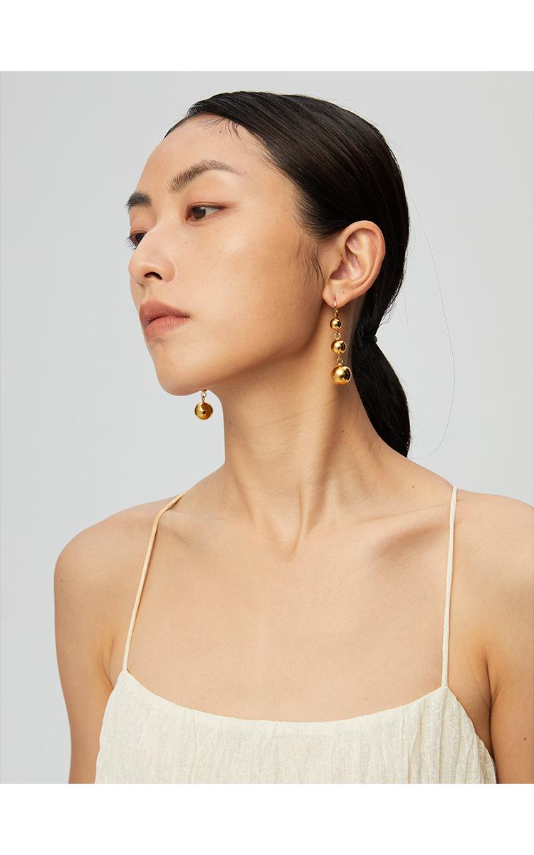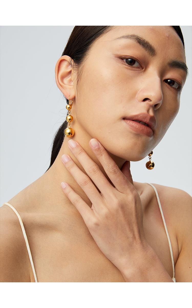 Compre Estilo francês simples moda brincos vintage dourados três pingente bola redonda de ouro em brincos estilo frio para as mulheres no atacado no Joom.pro