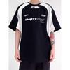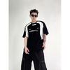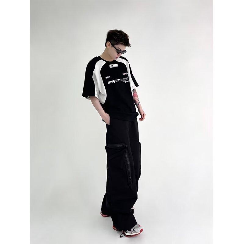 Moda Marca Estampada Contraste Manga Curta T-shirt Masculino Loose American Style Retro 2024 Verão New High Street Style Rag Half Sleeve