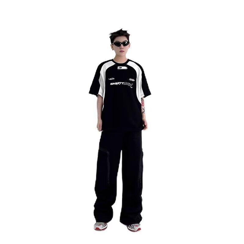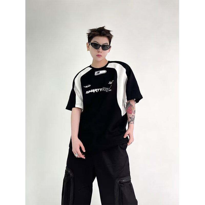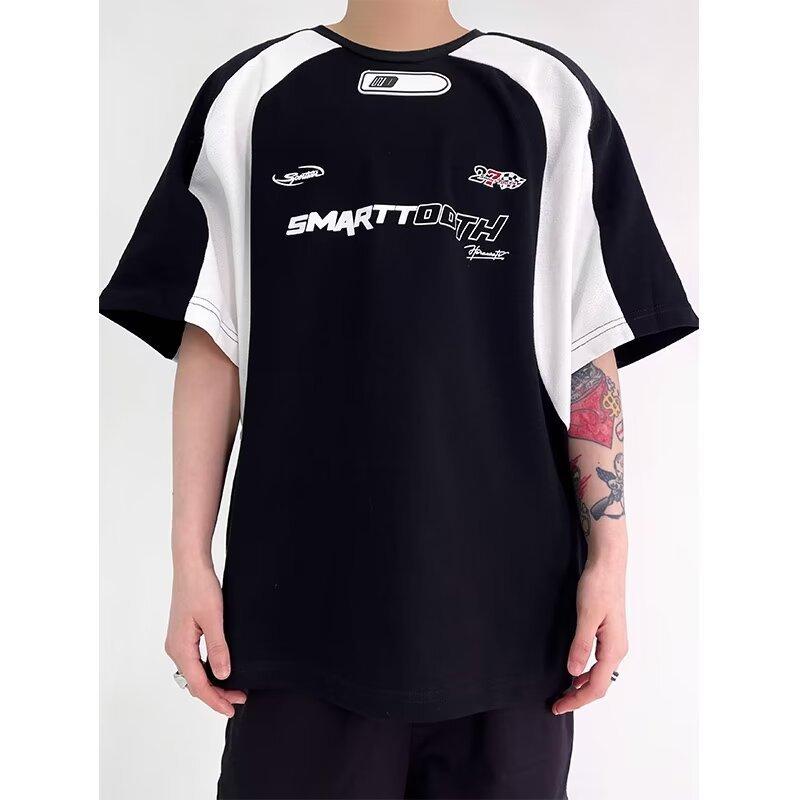 Compre Moda Marca Estampada Contraste Manga Curta T-shirt Masculino Loose American Style Retro 2024 Verão New High Street Style Rag Half Sleeve no atacado no Joom.pro