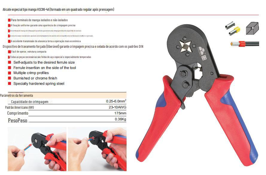 Alicate de Crimpagem Hsc8 6-4 Conjunto de Blocos de Terminais Europeus Tipo Tubo Tipo Pino Terminal Alicate Terminal Alicate de Crimpagem 0.25-6