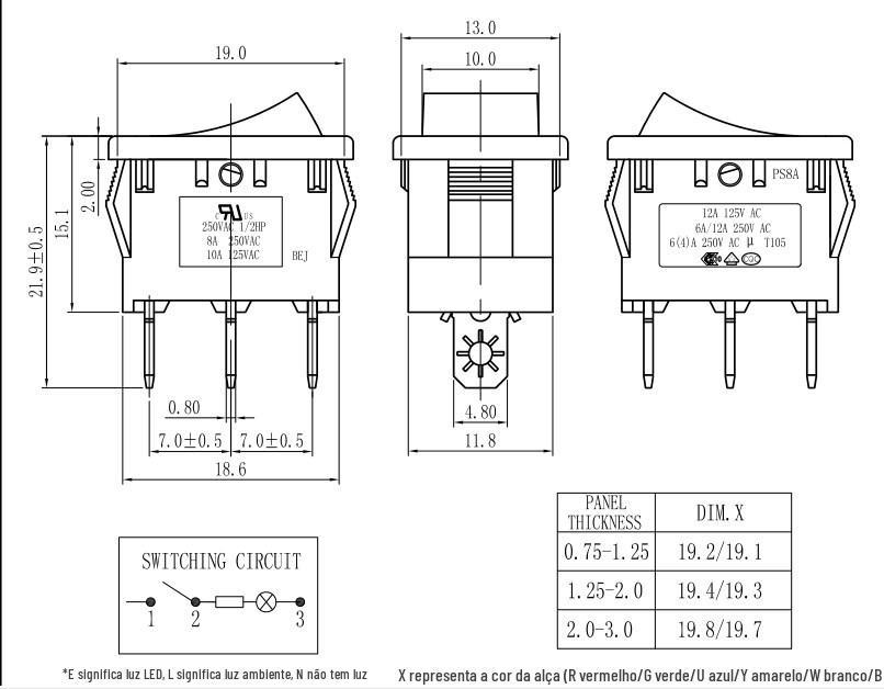 Interruptor de alternância: Plugue diretoPCBDobrar pés de tábuas, pés de arame de solda, etc.