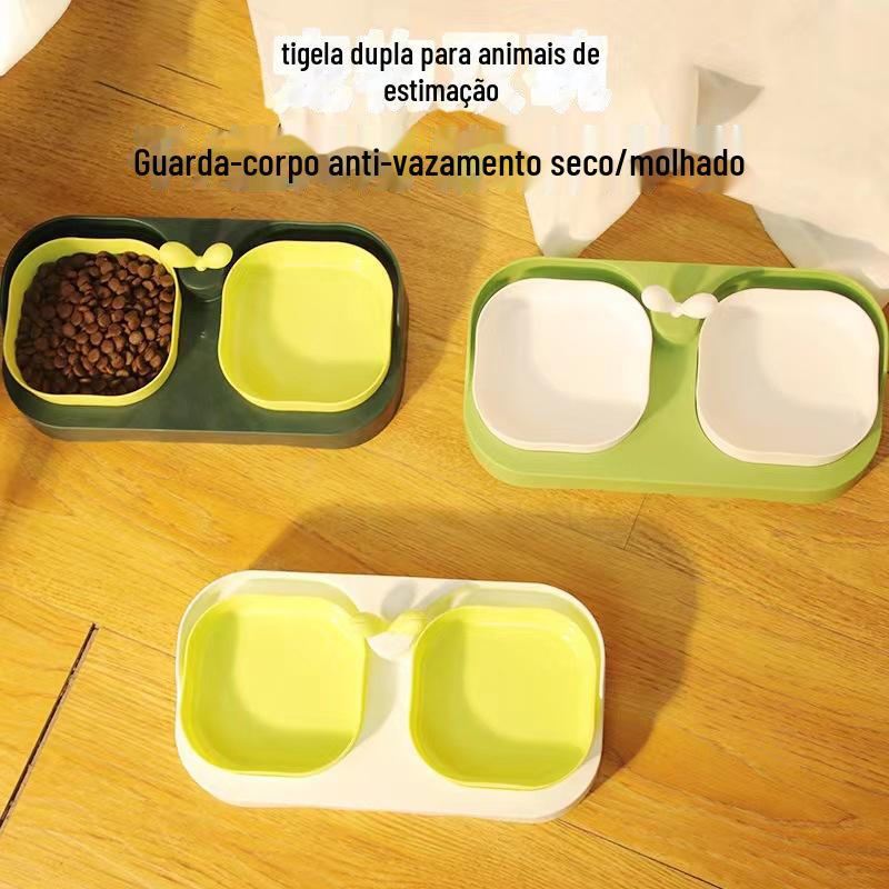 Tigela para animais de estimação para comer e beber, tigela dupla separada para gatos, suprimentos para animais de estimação, formato de botão de árvore, tigela de proteção anti-vazamento para alimentos |