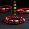 Pulseira de Cinábrio Jade Hetian Feminina Areia Dourada Roxa Pulseira de Múltiplas Voltas Joia Masculina Presente
