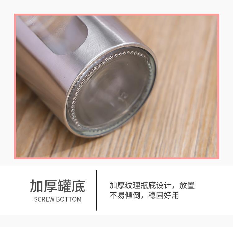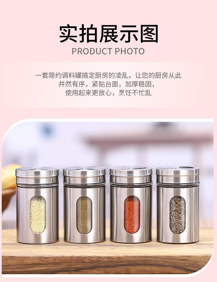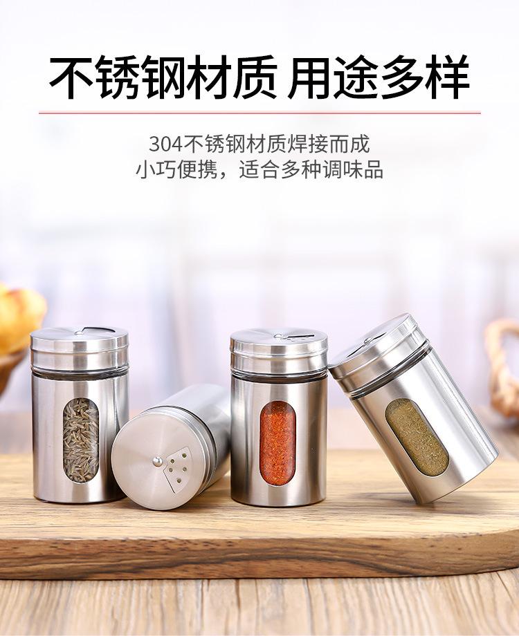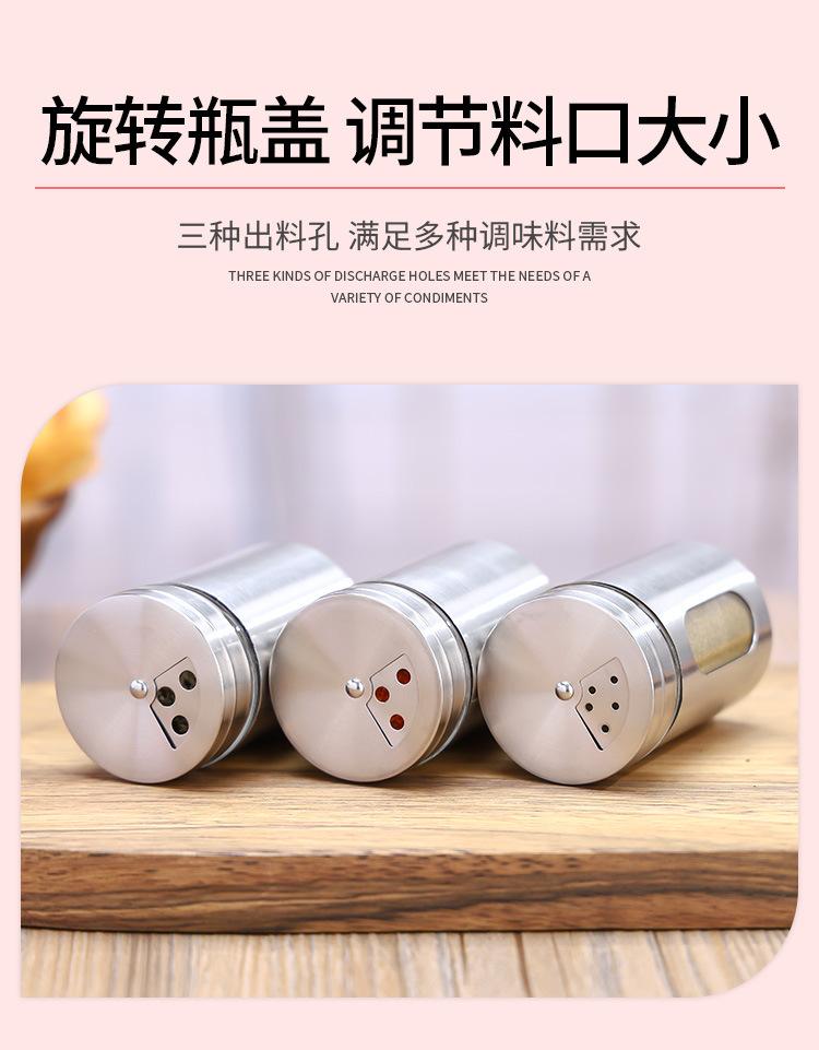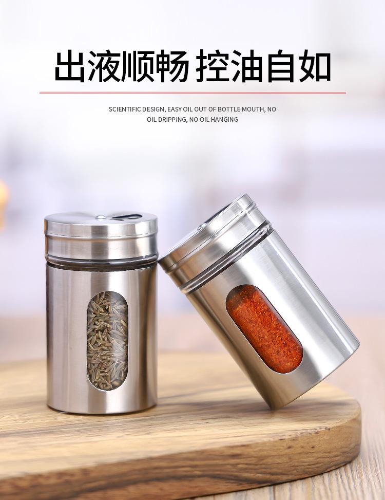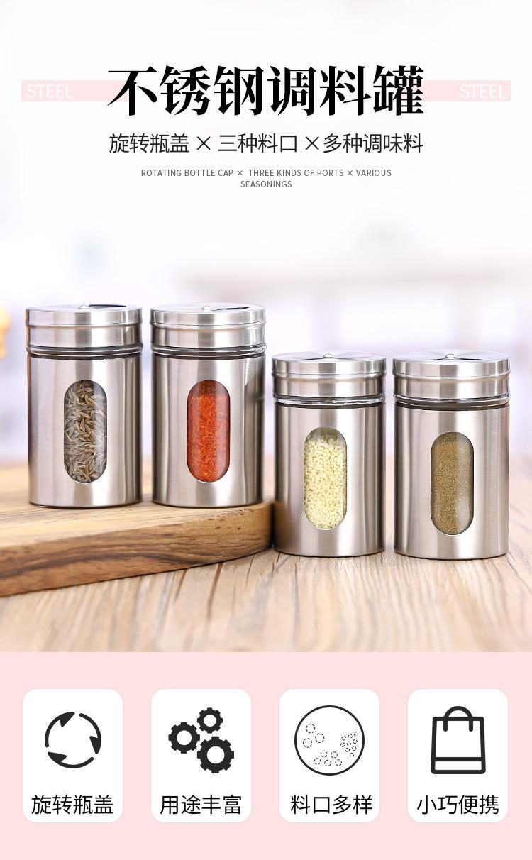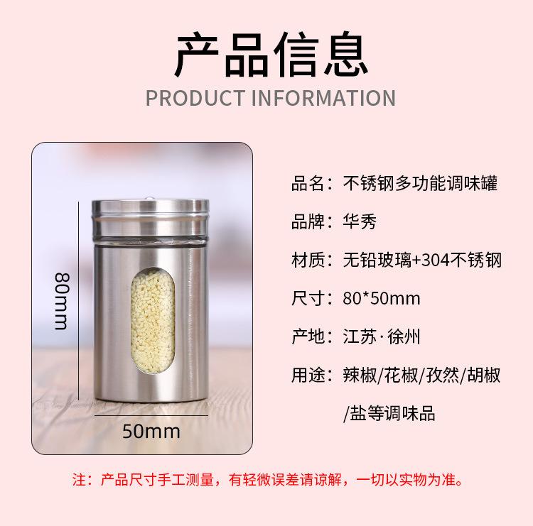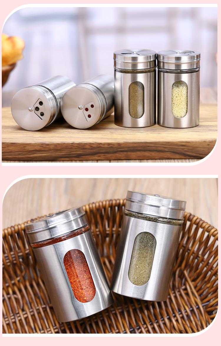 Potes de Tempero de Aço Inoxidável, Frascos de Especiarias, Atacado de Vidro, Três Tipos de Dosagem, Recipientes Visíveis Redondos para Condimentos