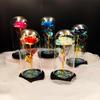 Presente para o Dia da Deusa, Presente Pequeno de Aniversário para o Dia das Mães, Ornamento de Cúpula de Vidro de Flor Rosa de Luz Colorida de Três Folhas, Fábrica de Origem