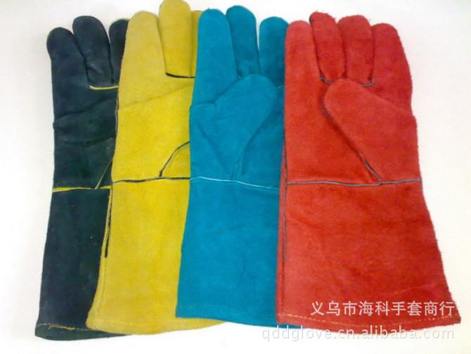 Luvas de soldagem grau C azul preto vermelho listra pano couro dividido de vaca palma completa resistente ao desgaste e fabricantes duráveis atacado