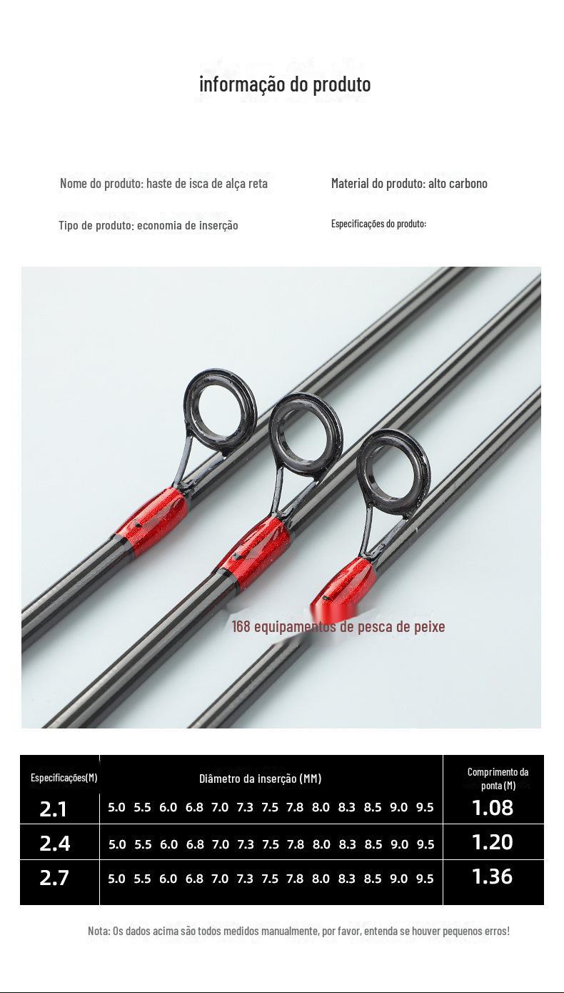 A vara Luya é ligeiramente equipada com uma seção de vara de pesca, cabo reto, cabo de arma, oco de carbono 1,8 metros, 2,1 metros, 2,4 metros