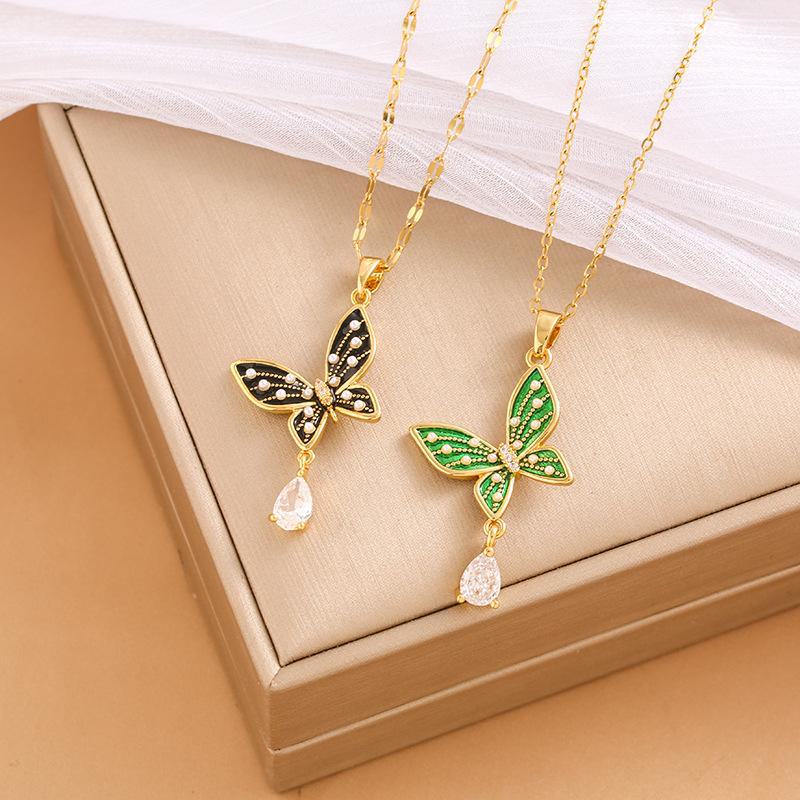 230 Color Butterfly Necklace-Gold Black, 230 color butterfly necklace-Golden Green