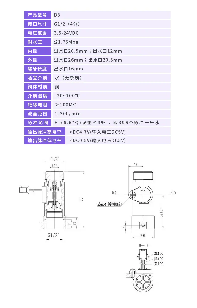Medidor de água inteligente Medidor de vazão digital Sensor de fluxo de água Tanque Quantitativo de água B8 Sensor Hall de cobre