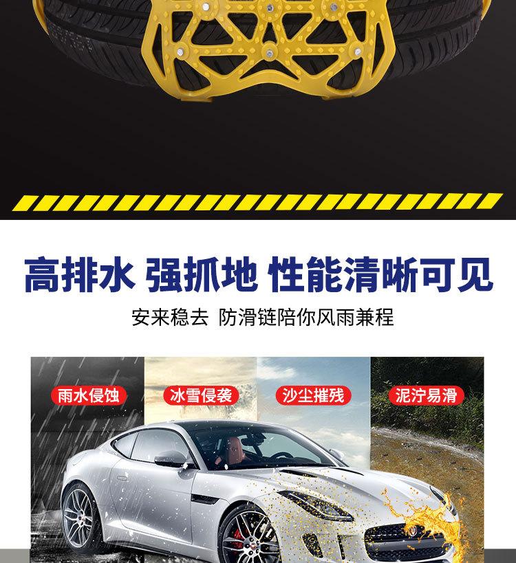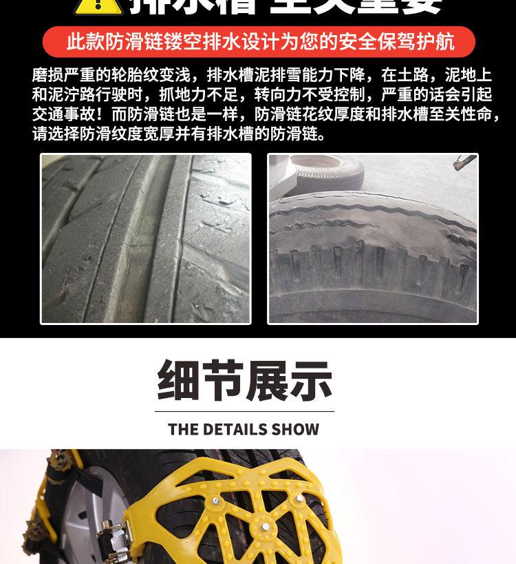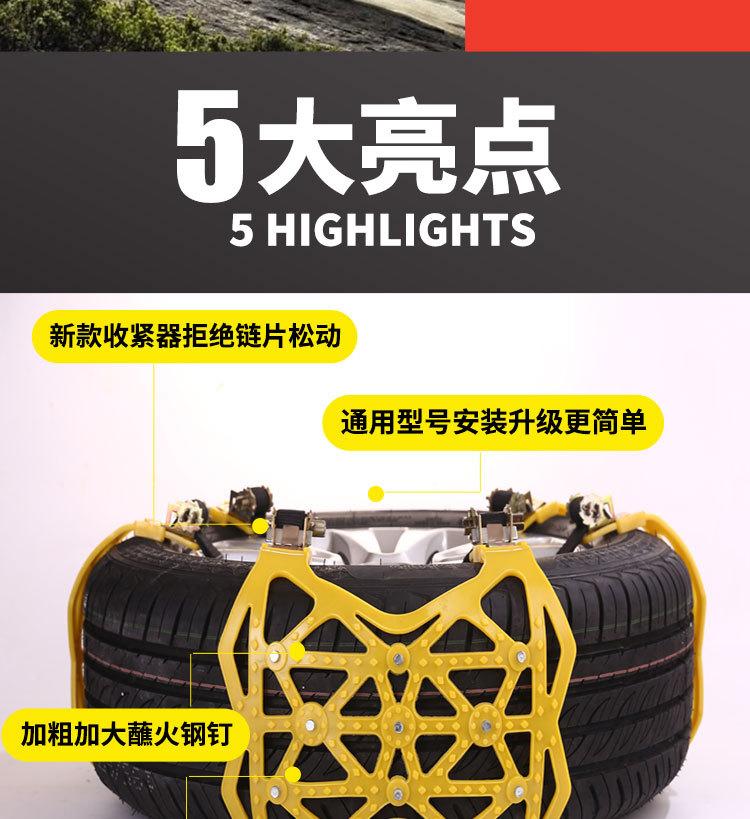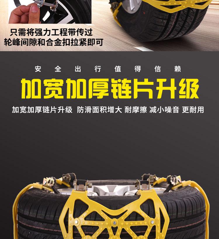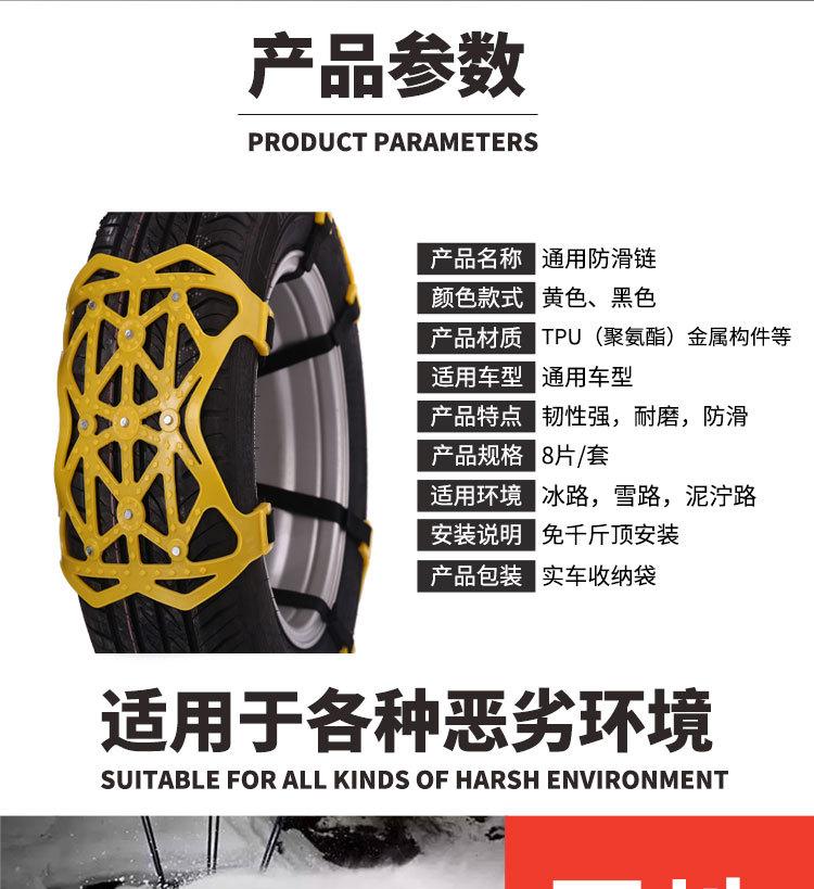 [Características do produto]: As correntes antiderrapantes para carros são produtos de segurança automotiva especialmente projetados para a segurança ao dirigir. Utilize a superfície áspera especialmente projetada da corrente antiderrapante para aumentar oO atrito com a superfície da estrada, geralmente em condições de neve e lama, protege os pneus, evita que escorreguem e garante a condução normal do veículo. Especialmente no invernoEm estradas com neve, pode efetivamente garantir a condução suave e segura dos veículos.