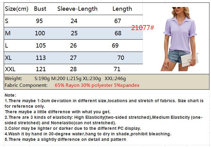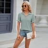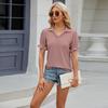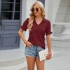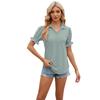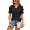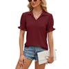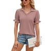 Amazon European and American cross-border foreign trade 2024 Summer new solid color lapela short sleeve cuff plissado loose top para mulheres