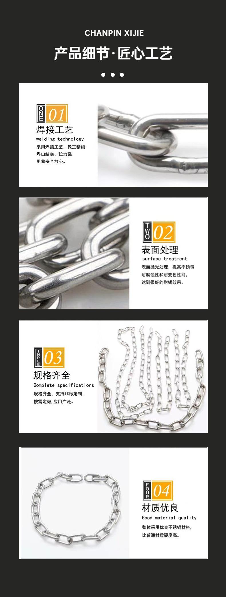 304 corrente de elevação de aço inoxidável soldagem de alta temperatura anel de mineração industrial corrente de anel longo corrente de anel curto de aço inoxidável