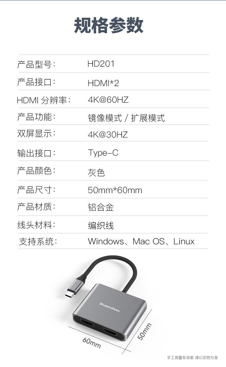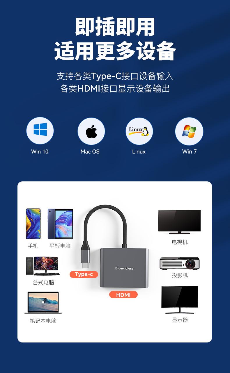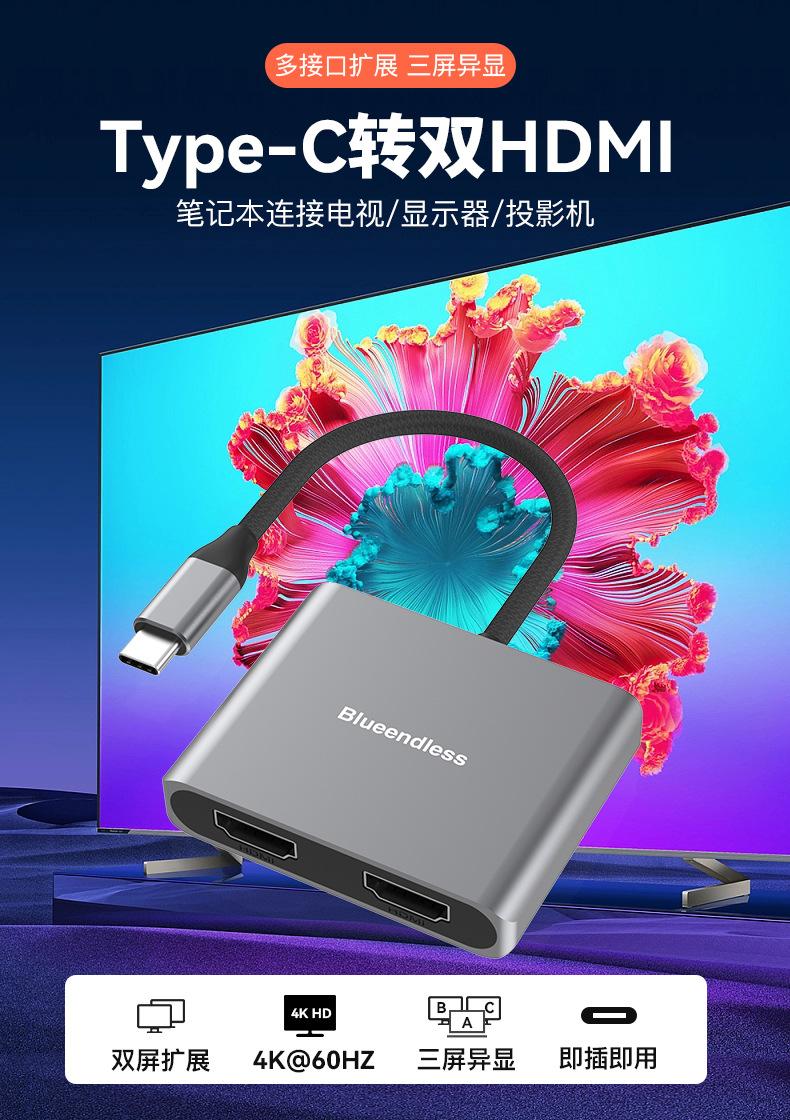 Estação de Acoplamento Typec Display Multi-Tela HDMI Duplo 4K60Hzusbc para *2 Conversor Estação de Acoplamento Multi-Interface