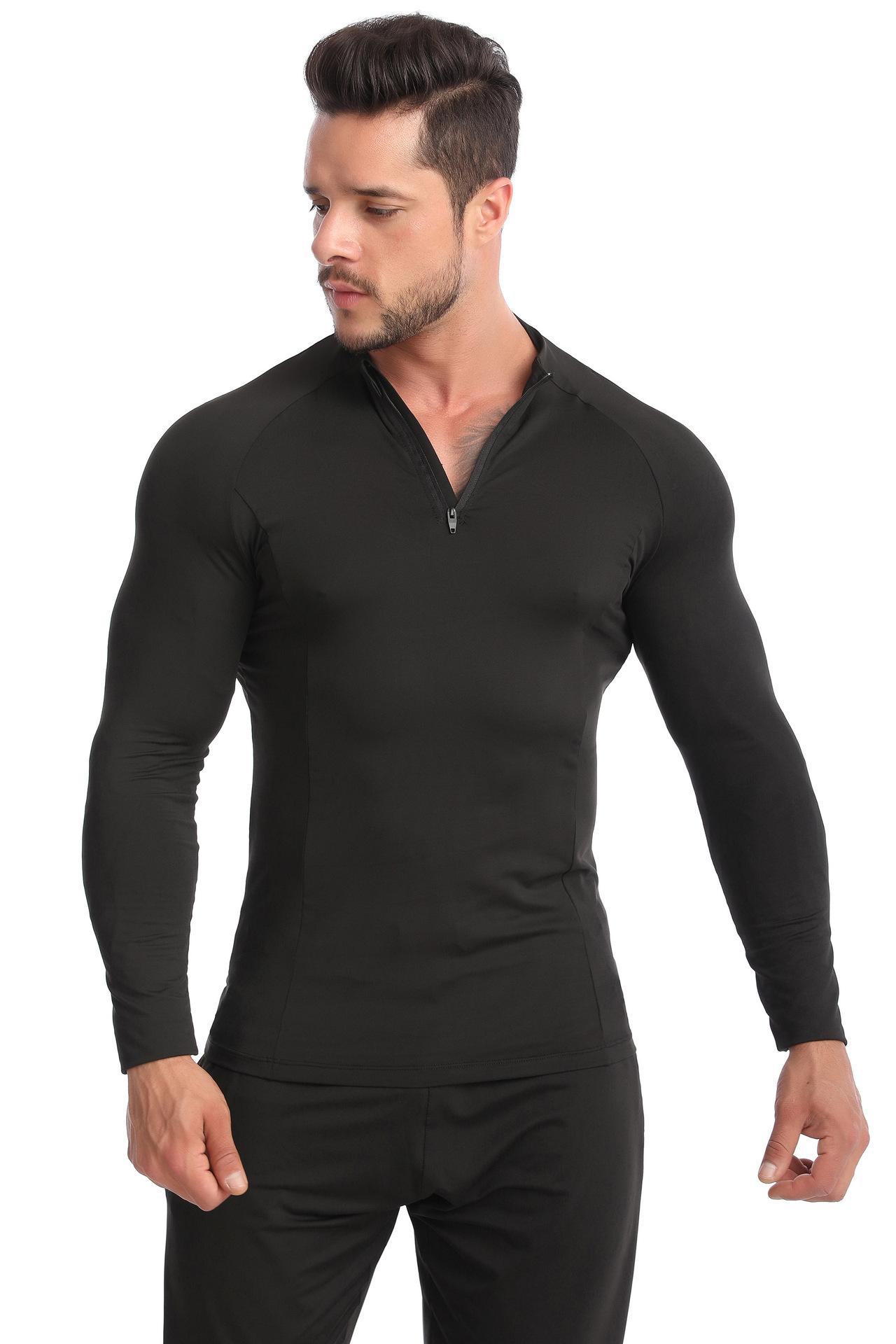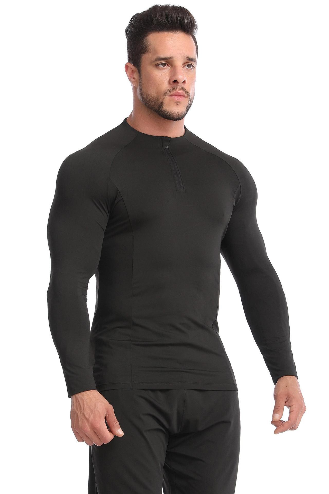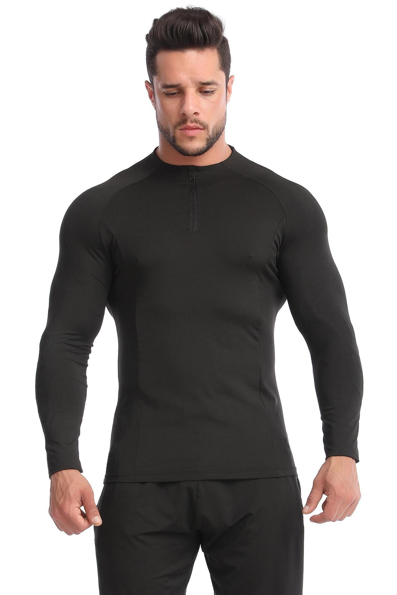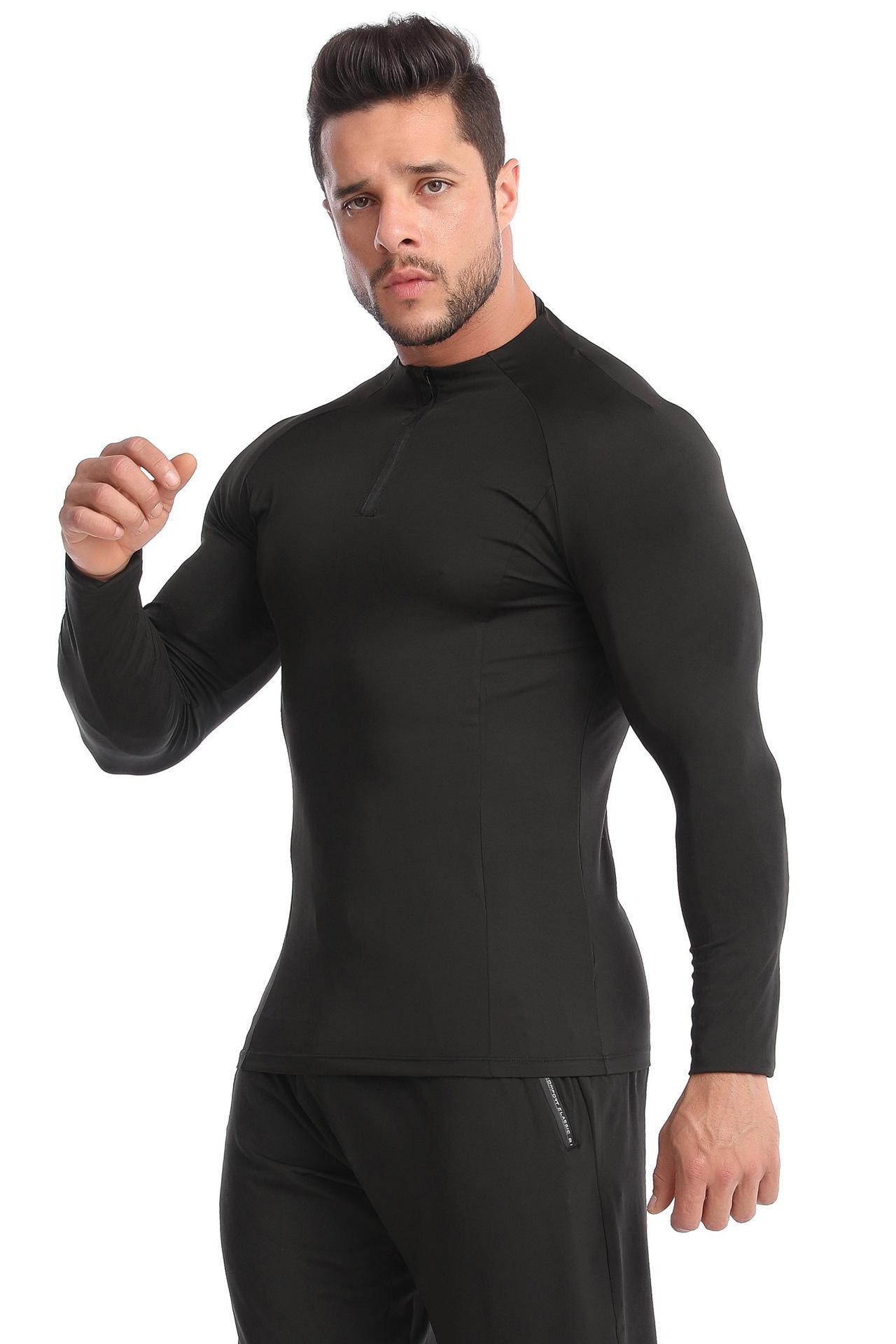 Sageu Roupa Fitness Masculina Primavera e Verão Elástica Pro Secagem Rápida Camiseta Suor Corrida Gola Alta Esportes Roupa Justa