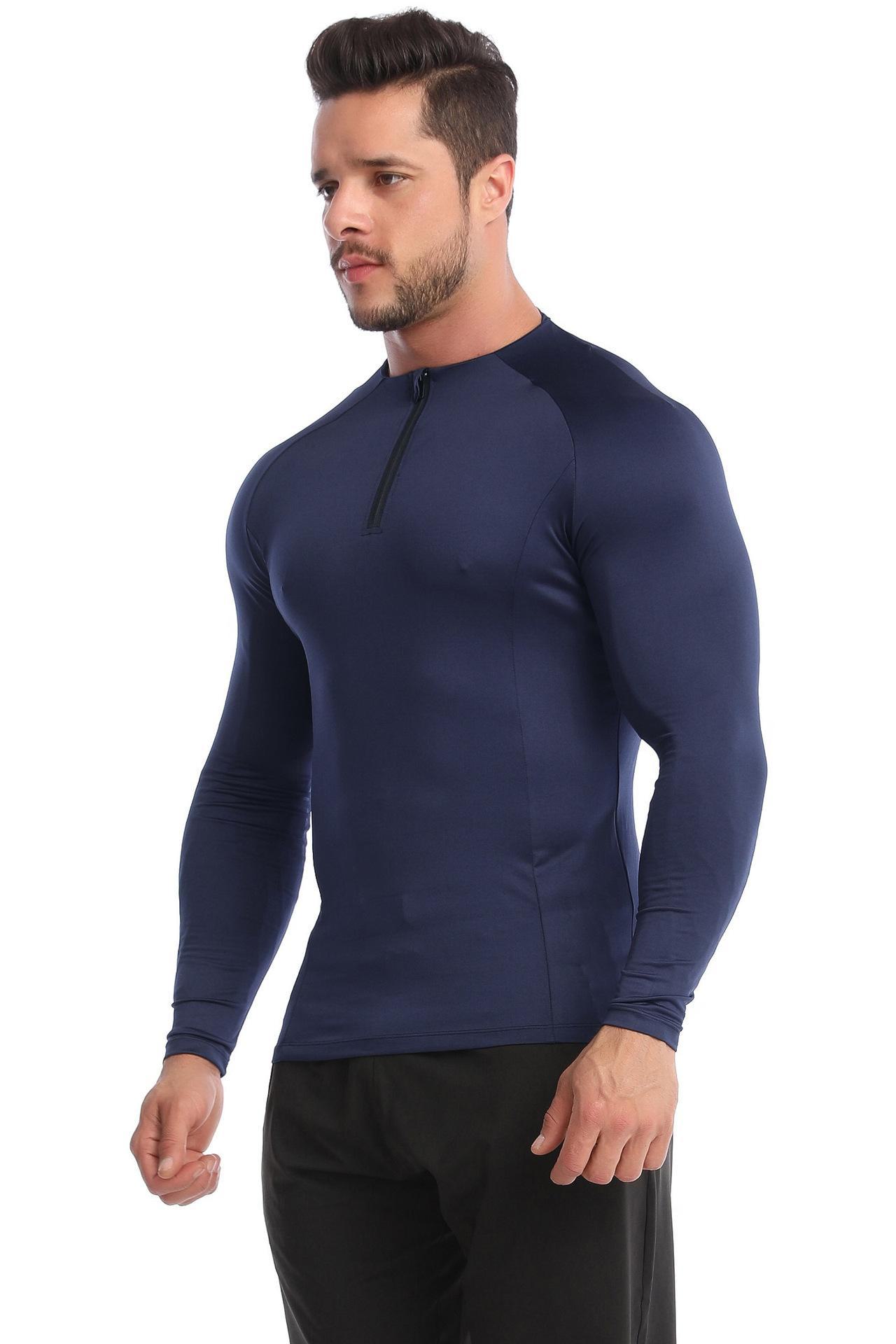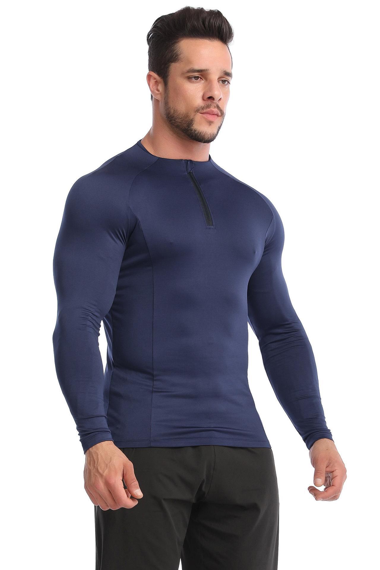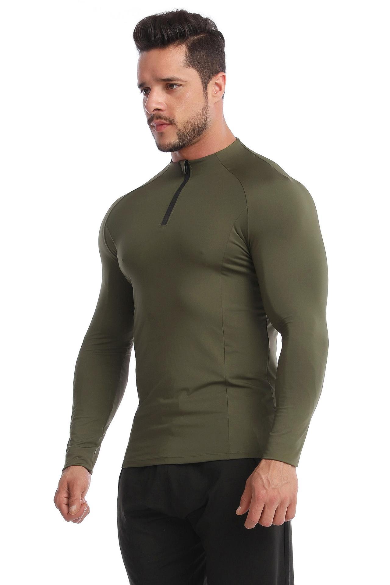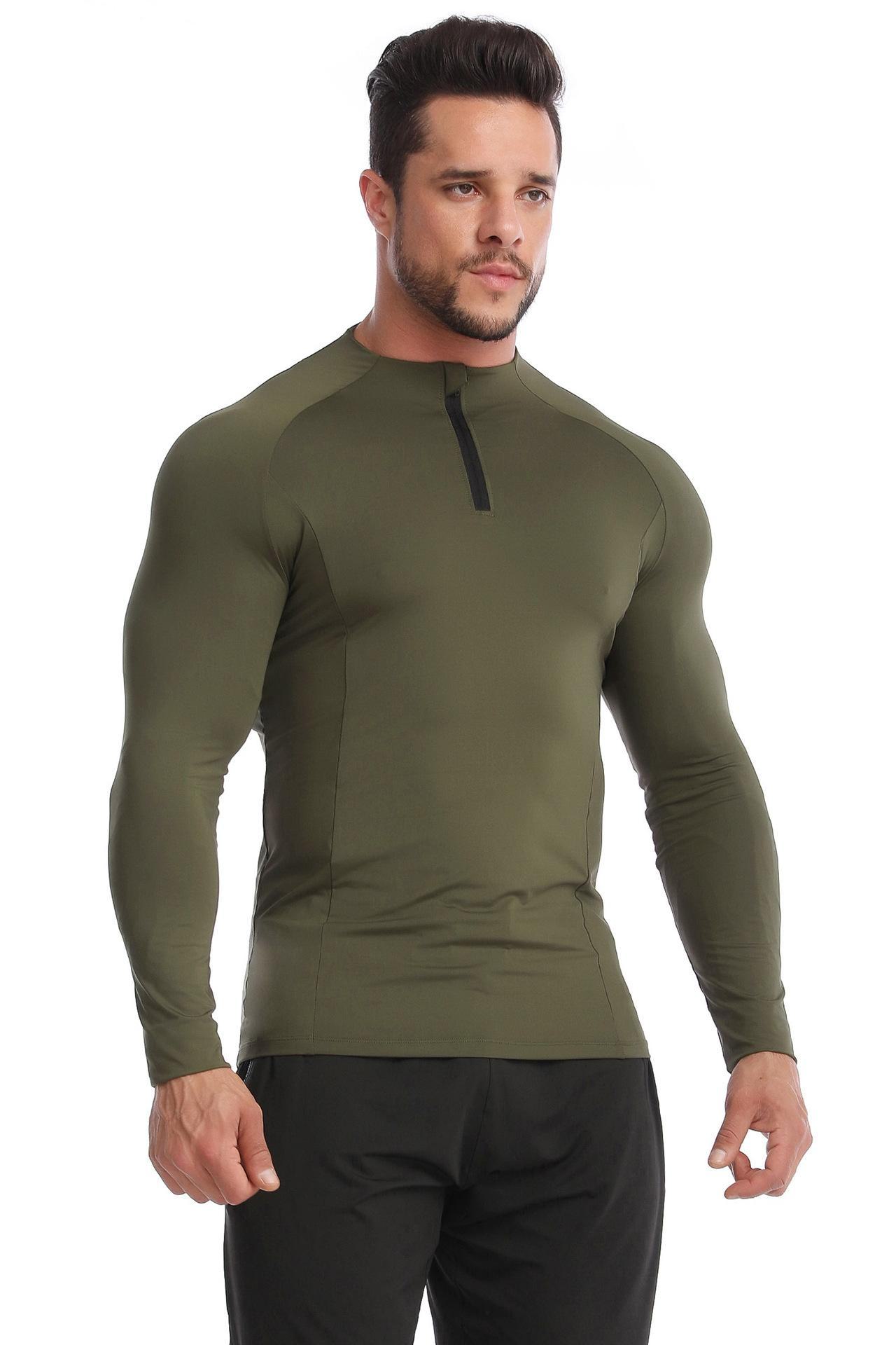 Sageu Roupa Fitness Masculina Primavera e Verão Elástica Pro Secagem Rápida Camiseta Suor Corrida Gola Alta Esportes Roupa Justa
