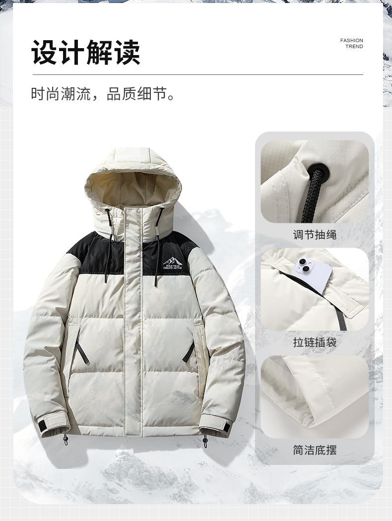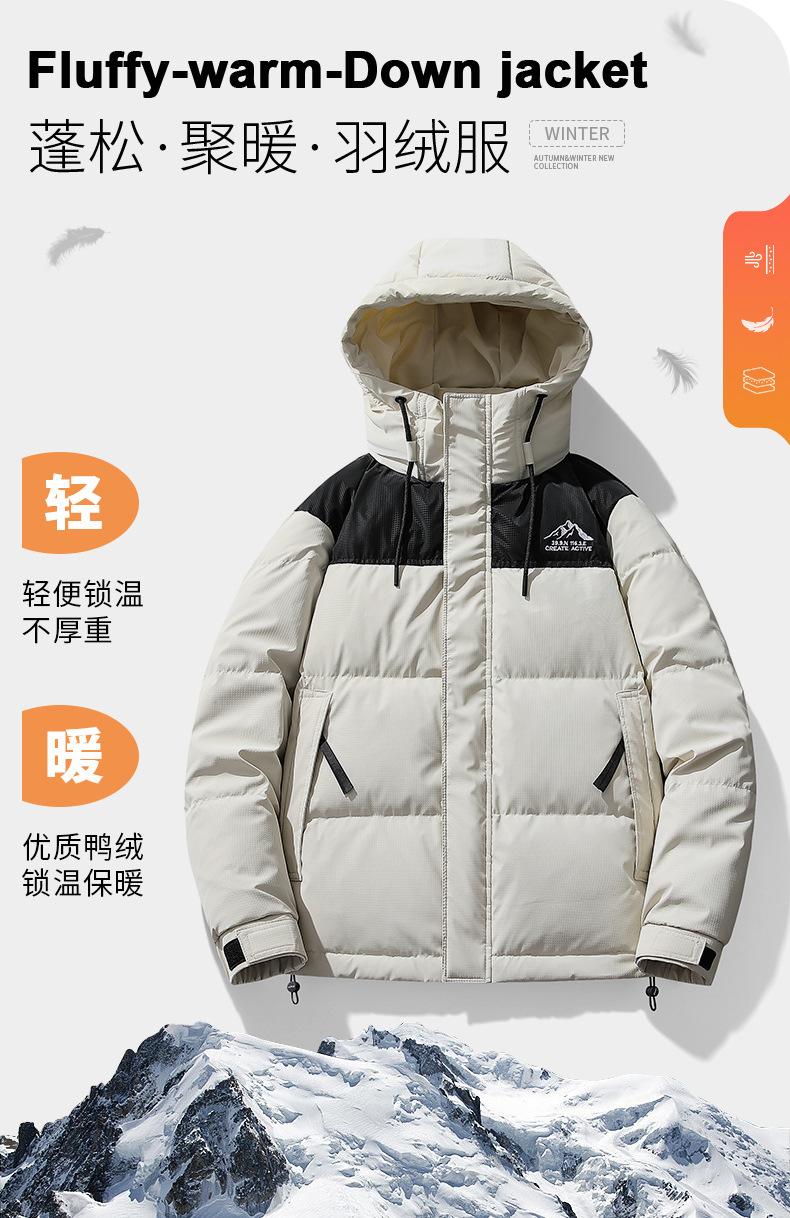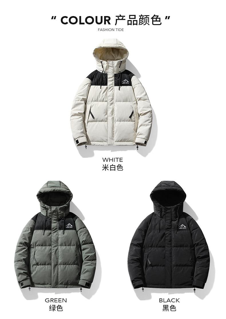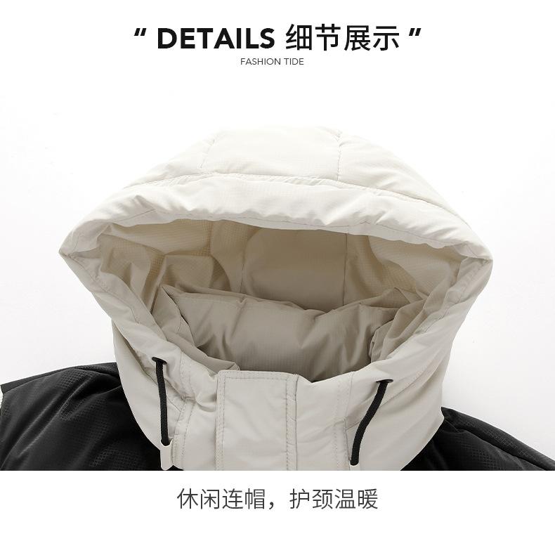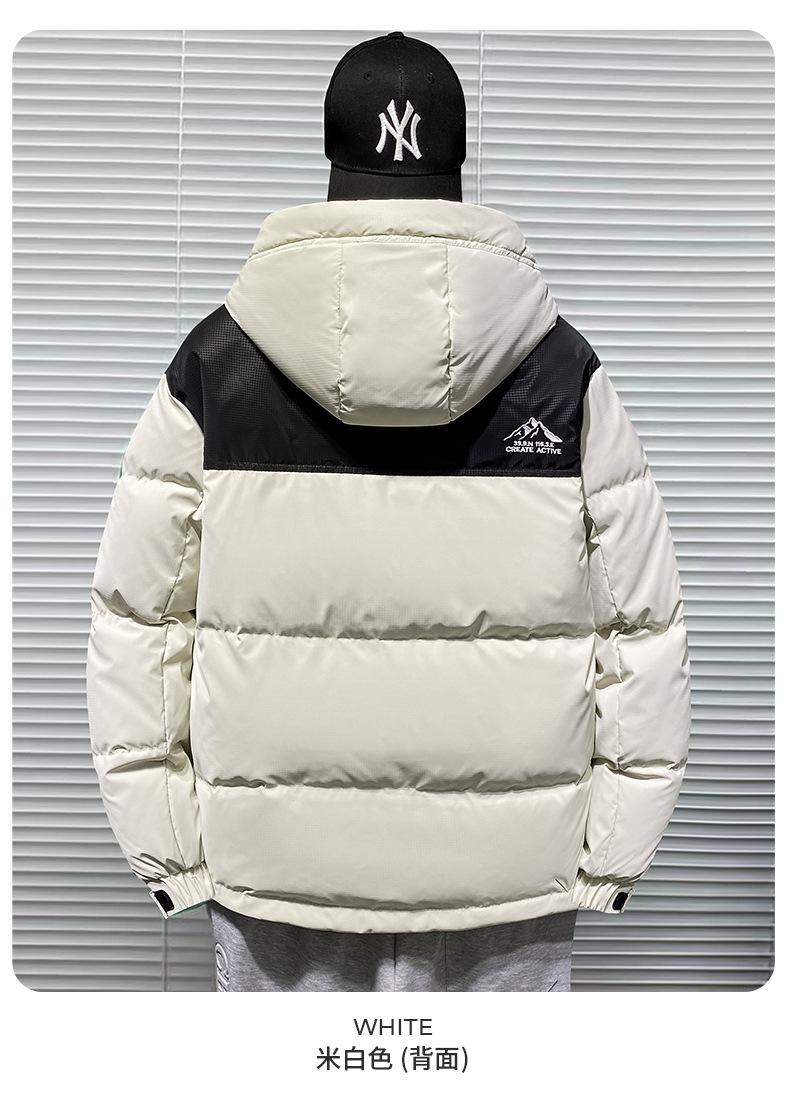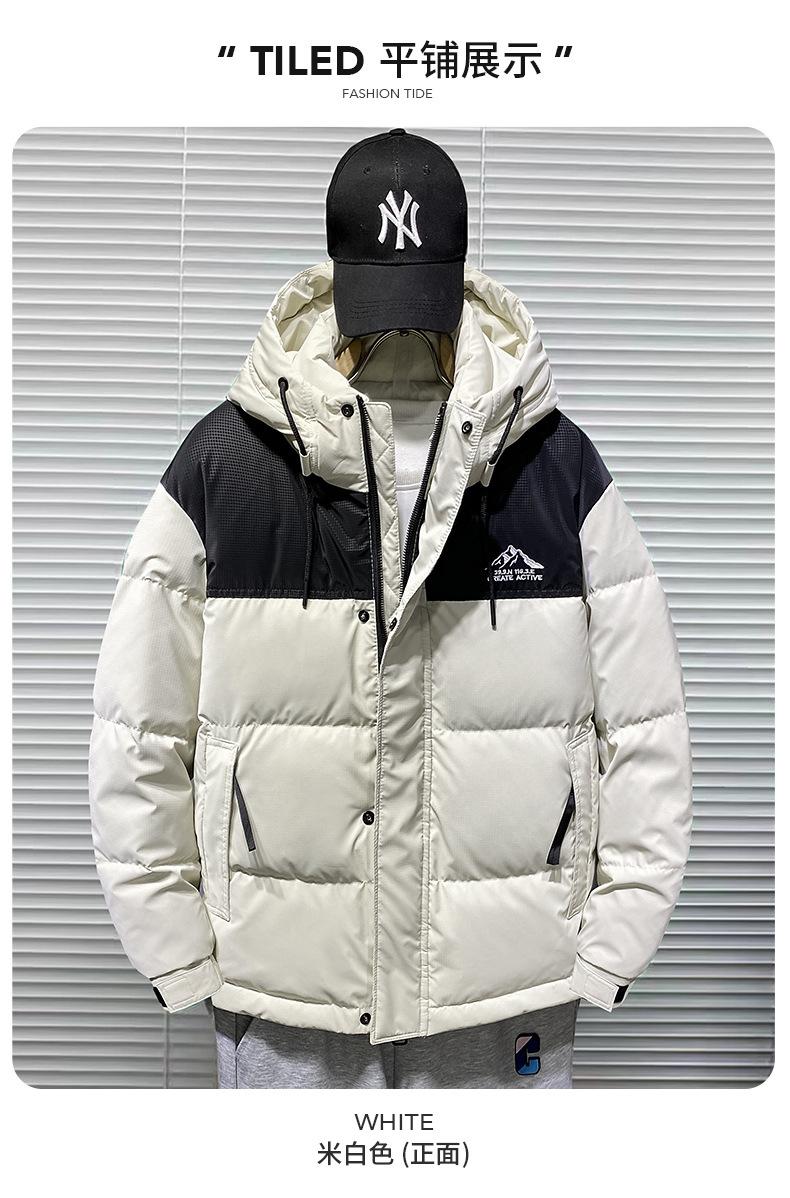 Jaqueta curta masculina de marca de moda, cor combinando, casaco com capuz de pato branco, casal esportivo, casual, engrossado, quente