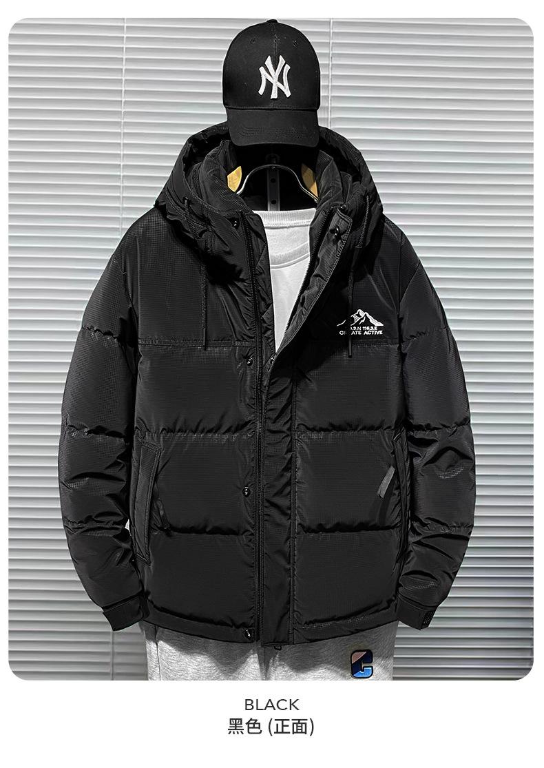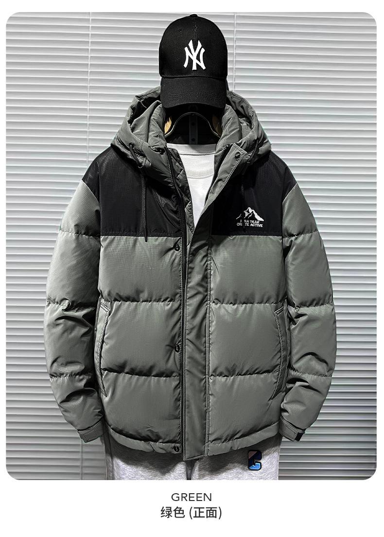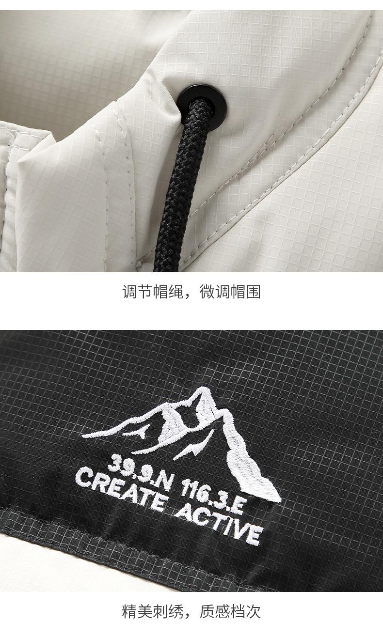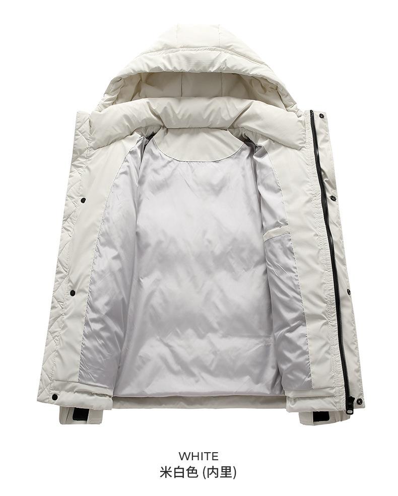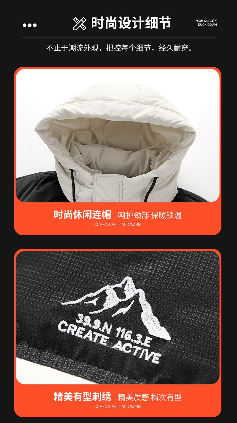 Jaqueta curta masculina de marca de moda, cor combinando, casaco com capuz de pato branco, casal esportivo, casual, engrossado, quente