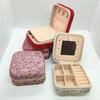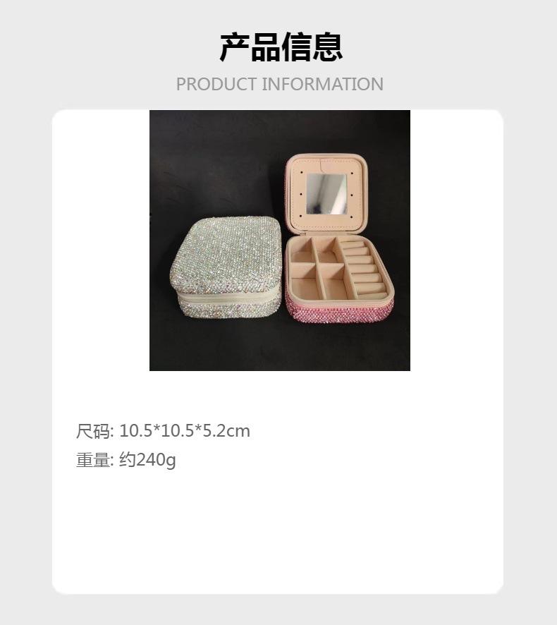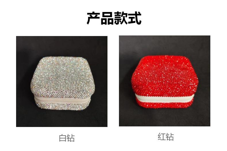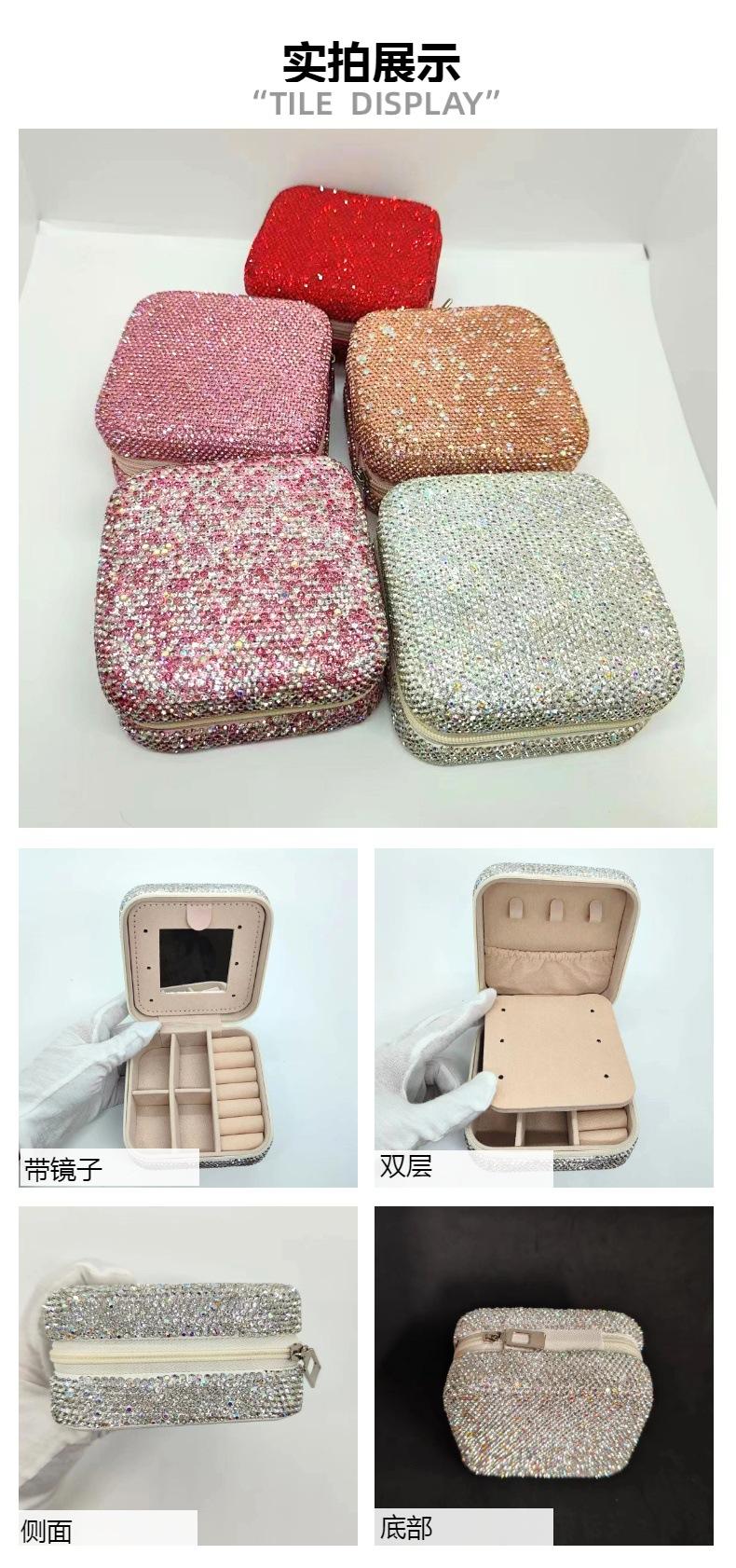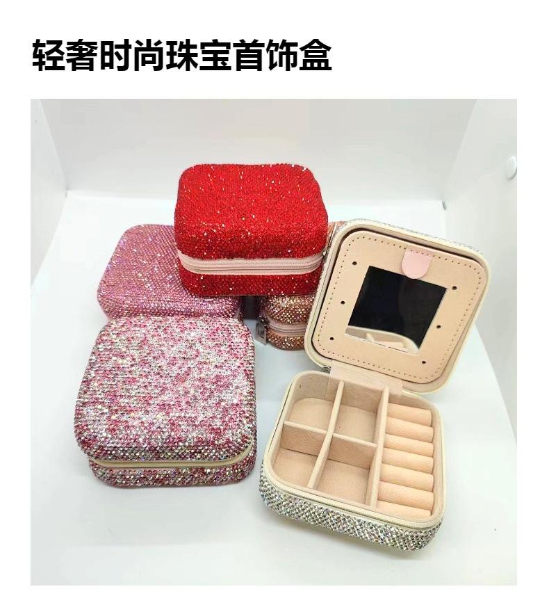 Caixa de joias de diamante quadrado líquido vermelho de viagem portátil caixa de armazenamento brincos colar anel caixa de joias caixa de joias caixa com espelho