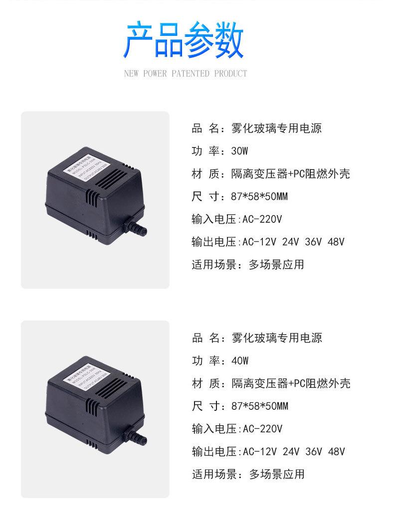 Fonte de alimentação AC especial para vidro atomizado 220V a 12v 24V 36V 48V30W 50W 60W transformador de engenharia