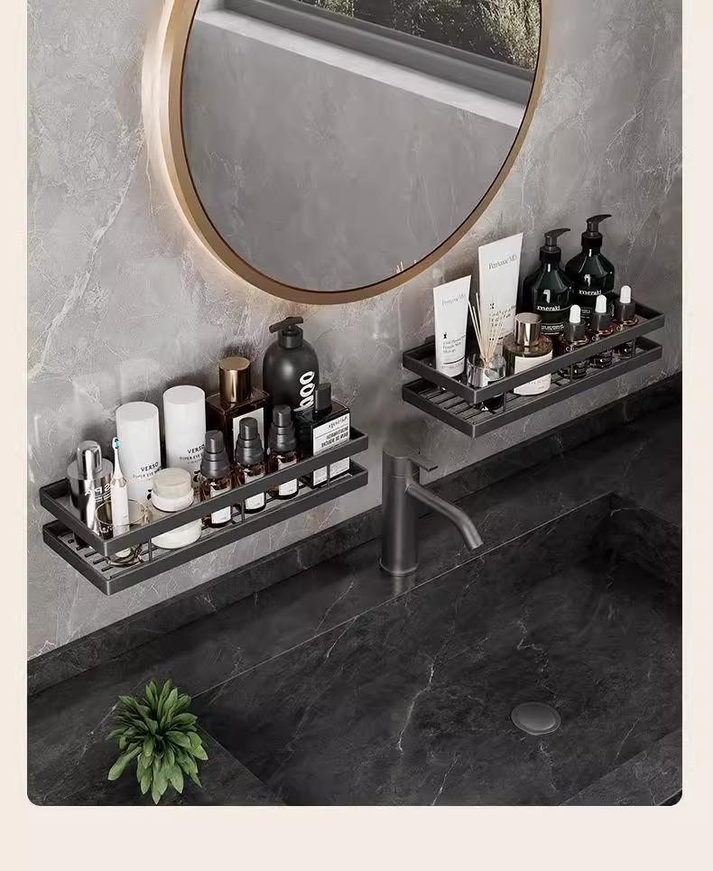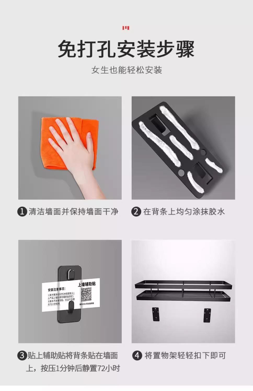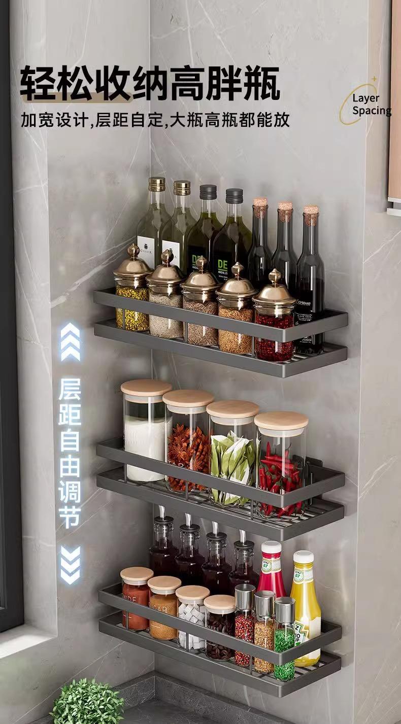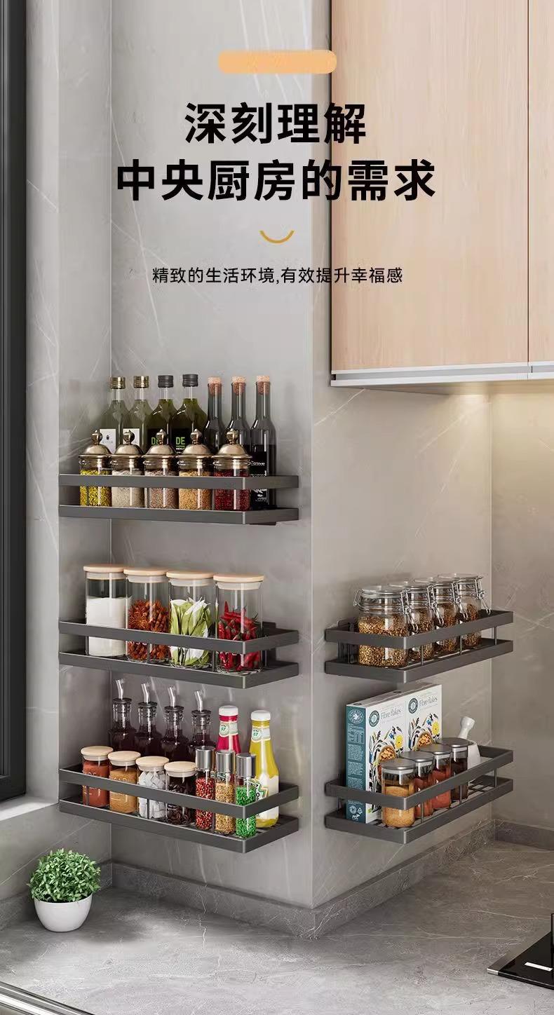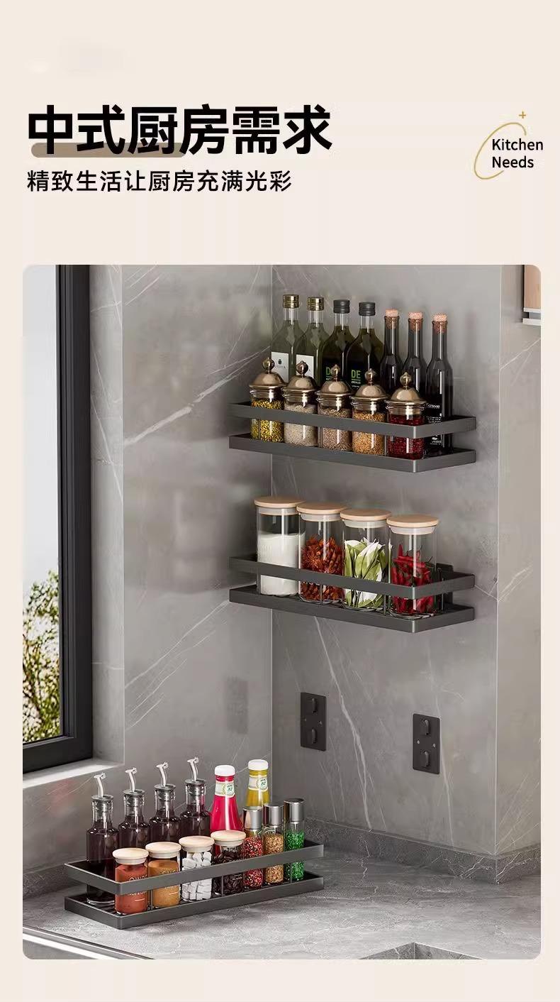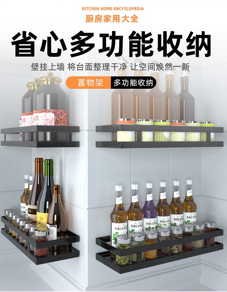Compre Prateleira de Armazenamento de Metal Espessado Cabide de Parede Parede Sem Furos Cozinha Temperos Prateleira de Armazenamento Spray Plástico Antiferrugem Prateleira de Banheiro no atacado no Joom.pro