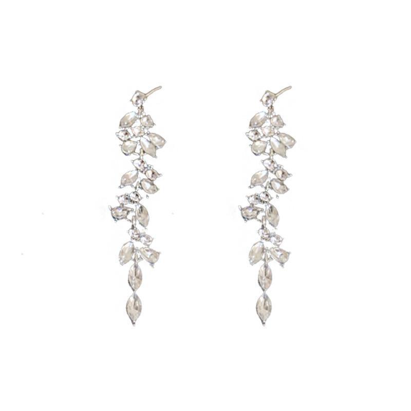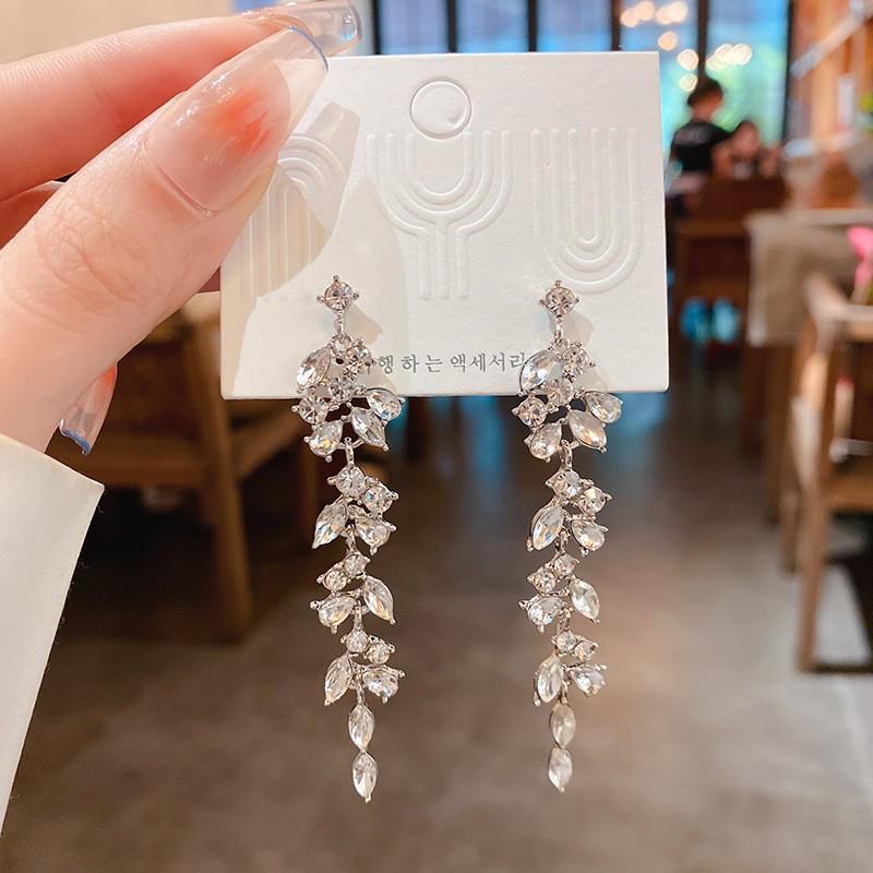 925 brincos de folha de cristal com borla longa de agulha de prata femininos ins brincos quentes da moda femininos brincos da Coreia do Sul atacado