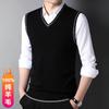 Colete masculino 100% lã de ovelha, casual, com decote em V, suéter puyuan quente, sem mangas, fino, para outono e inverno