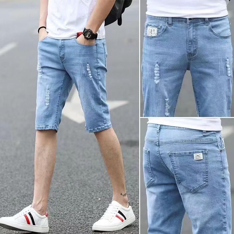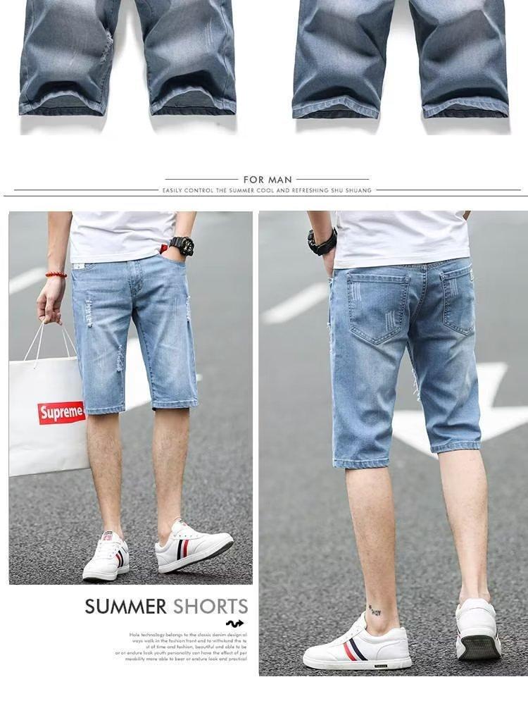 Compre Shorts jeans masculinos, calças finas retas e soltas de comprimento médio, calças casuais masculinas no atacado no Joom.pro