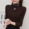 Camisa feminina de veludo de gola alta outono e inverno 2023 Vestido interno apertado bordado europeu quente de lã forrado top de camiseta