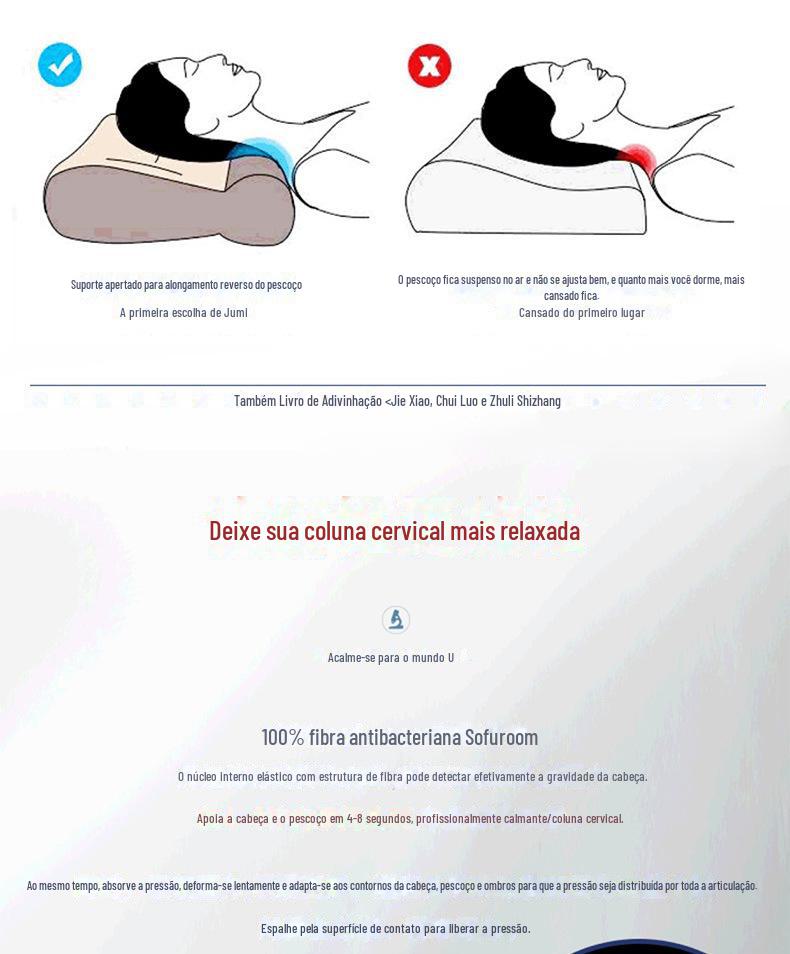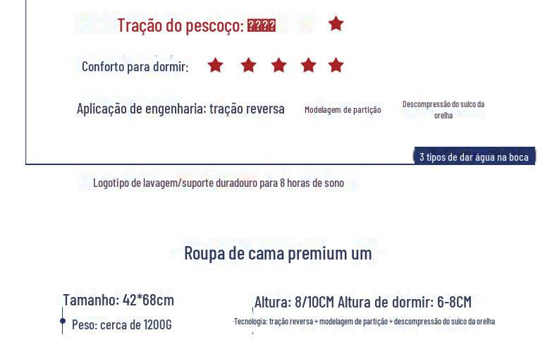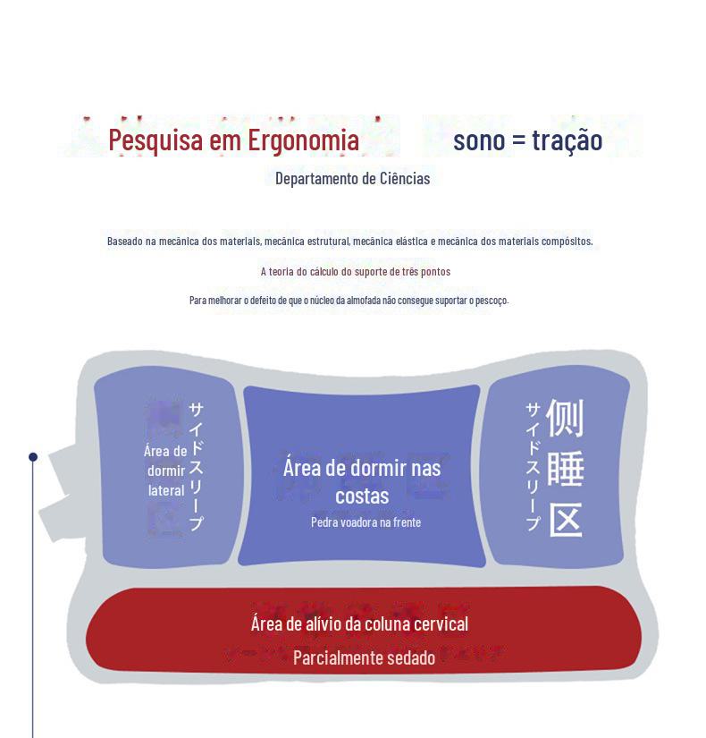 🔵Conceito de design: 5 zonas são projetadas de acordo com a ergonomia para apoiar o pescoço em várias posições de dormir. Você pode dormir livremente na superfície plana, cuidando dos ombros e do pescoço, e pode virar-se sem ficar com torcicolo. A superfície cilíndrica pode levantar a cabeça, o que é muito adequado para pessoas com curvatura cervical reta ~