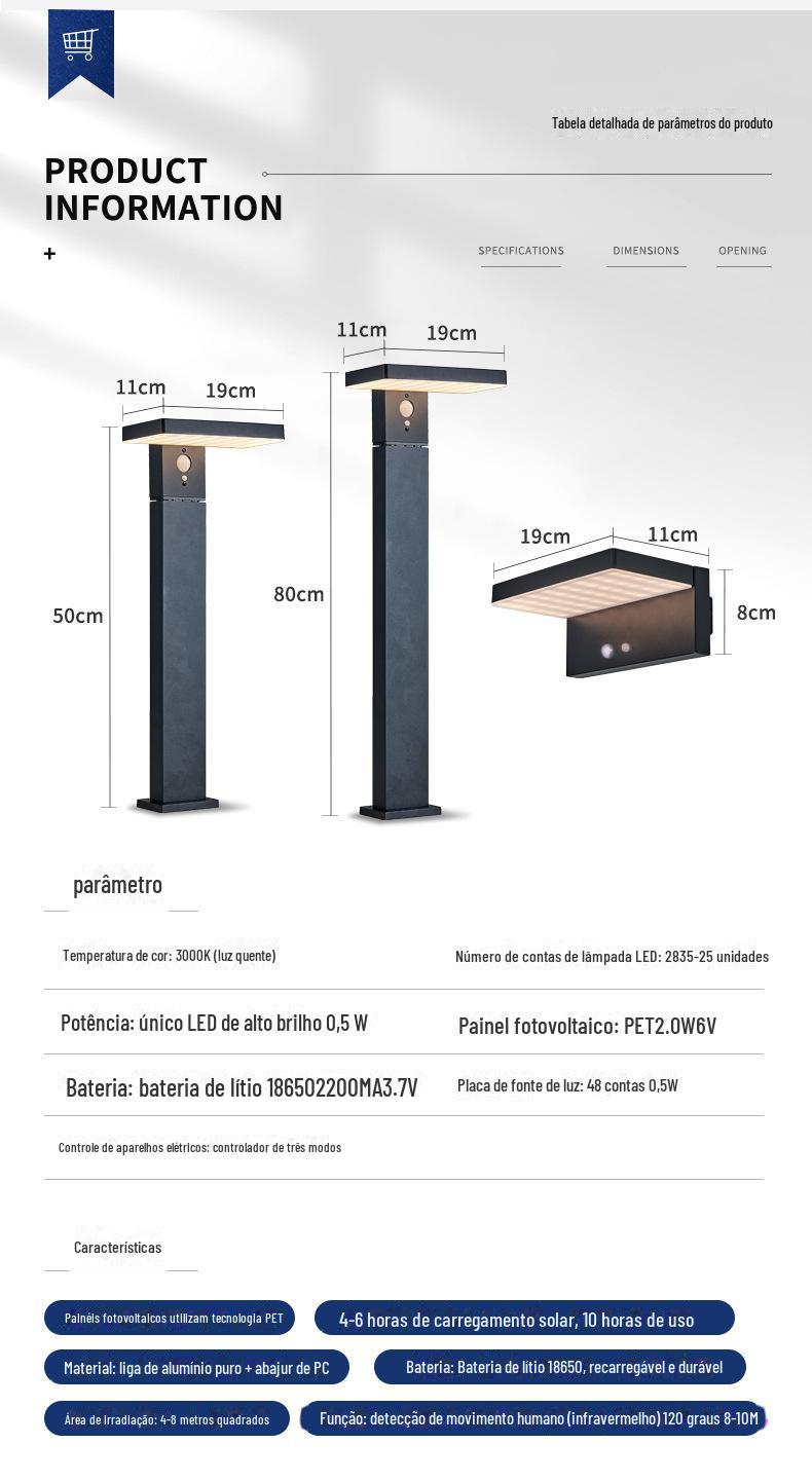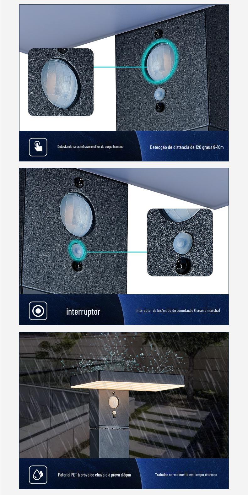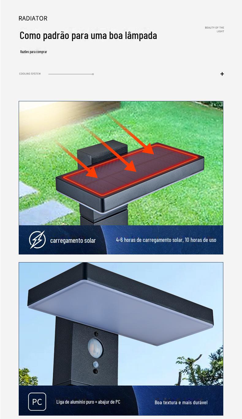 Lâmpada de pilar solar dedicada transfronteiriça, lâmpada de parede LED à prova d'água para jardim solar, lâmpada de jardim para vila
