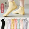 Meias Femininas com Fungos Cor Pura Meias Curtas de Algodão Ins Meias Cano Baixo Femininas Fofas da Moda Meias de Renda Macaron Casual Feminino