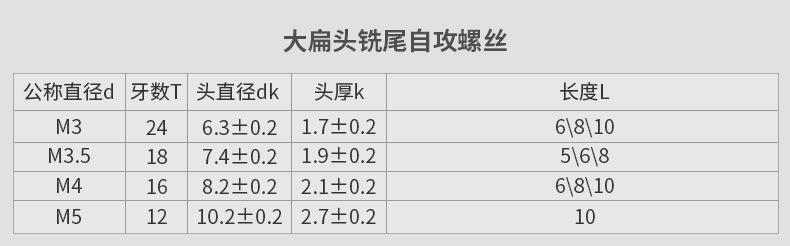 Large flat head milling tail self-tapping M4 * 6 white zinc, Large flat head milling tail self-tapping M4 * 8 ...