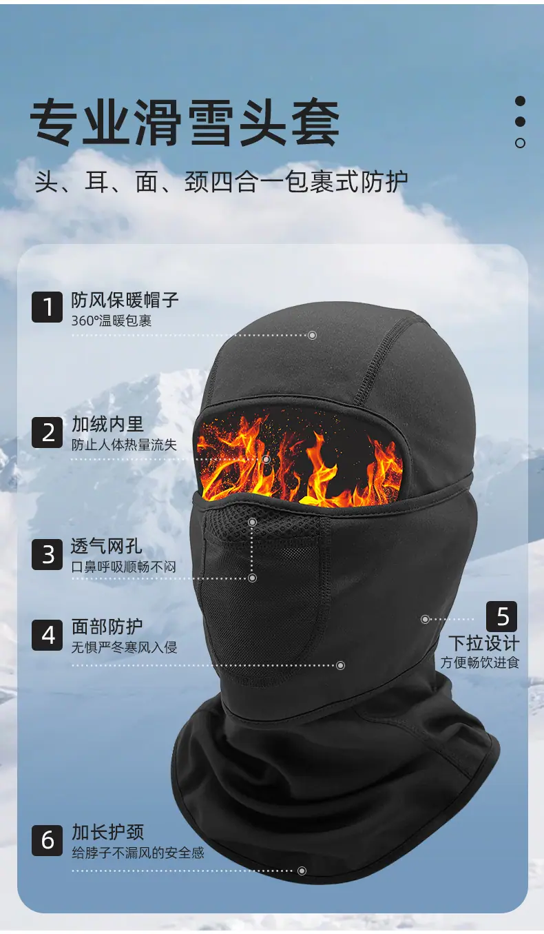 Capuz de Esqui de Inverno Transfronteiriço Ciclismo Outdoor à Prova de Vento Composto Quente Máscara Respirável Fábrica Fonte Proteção Contra Frio