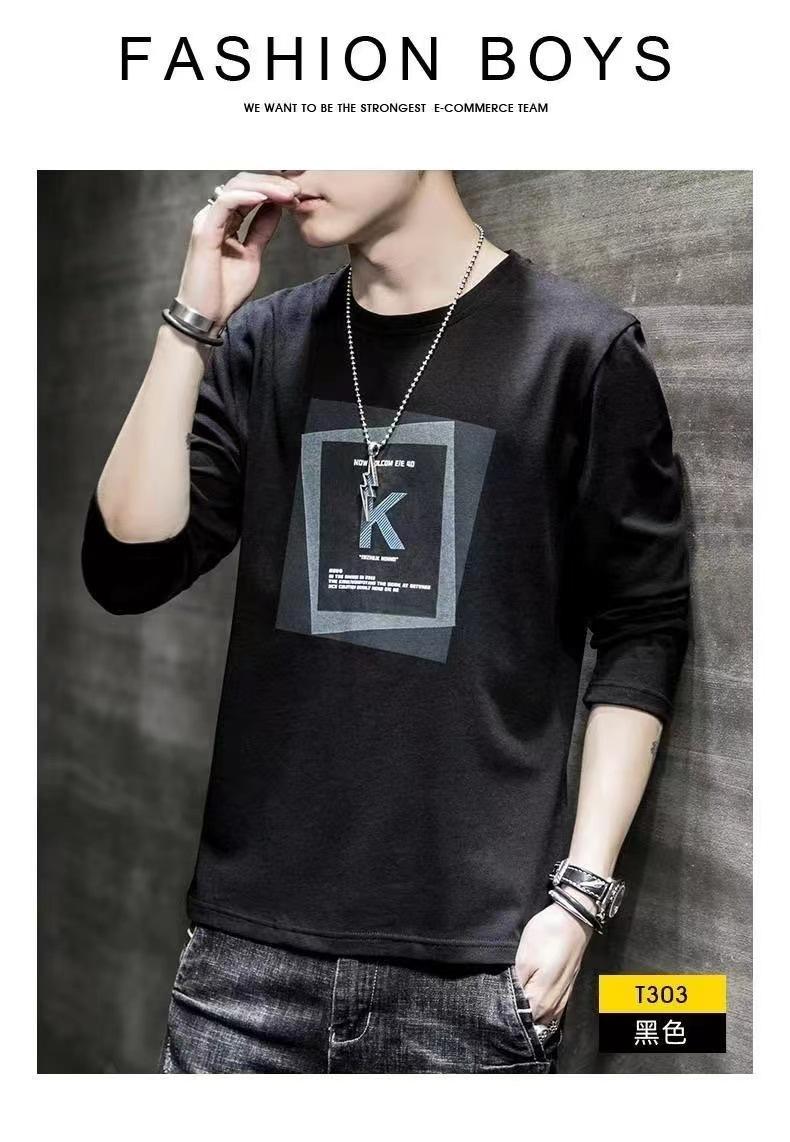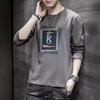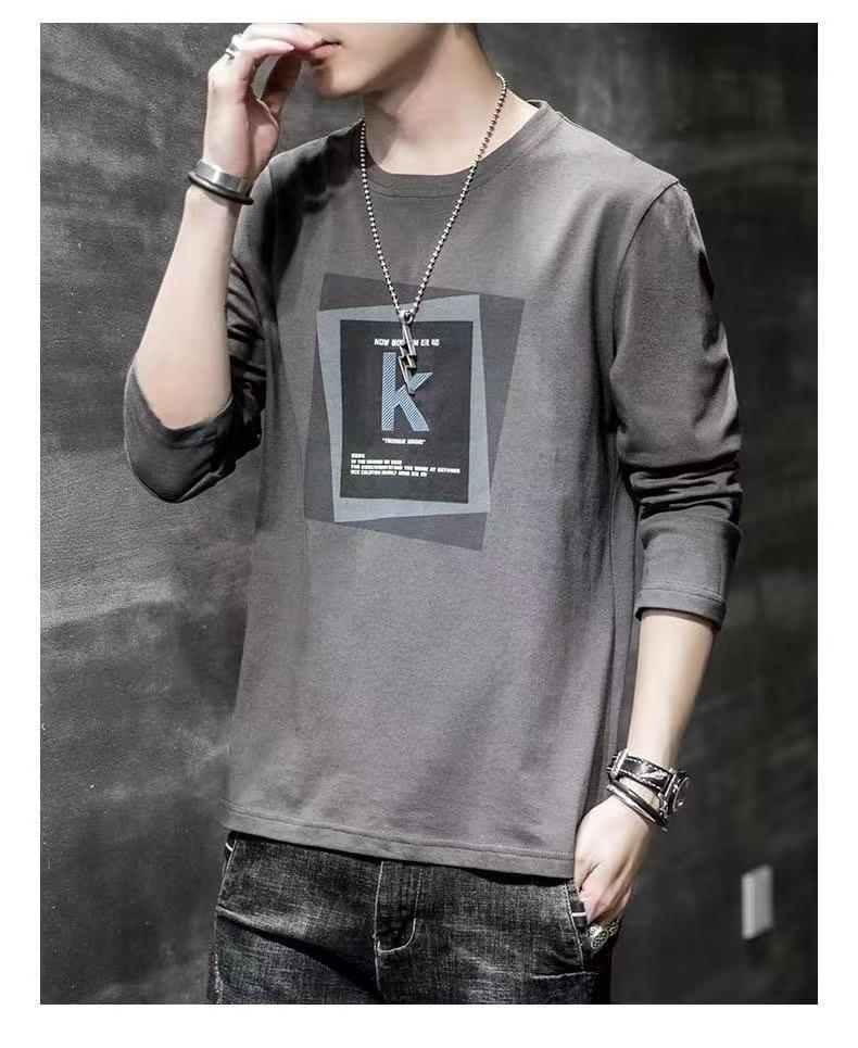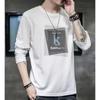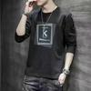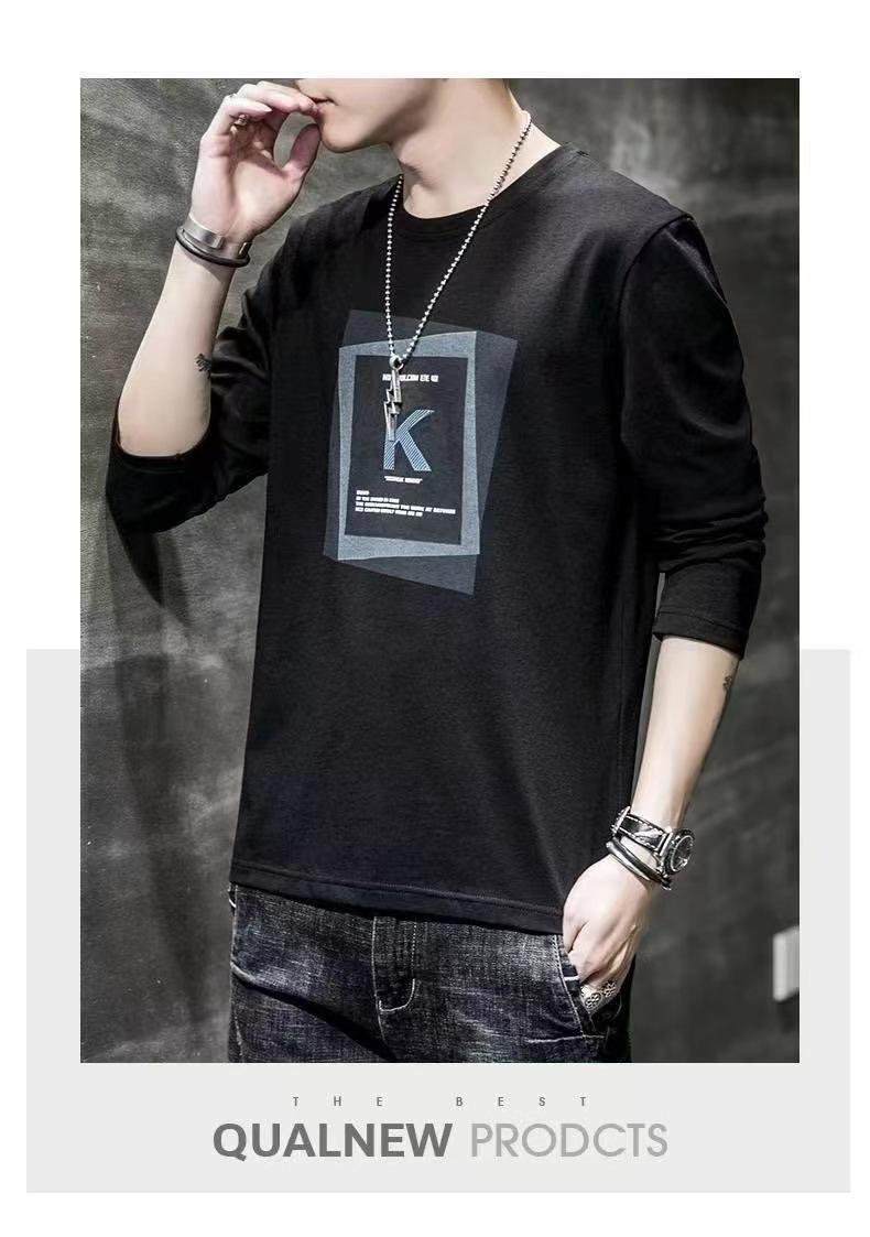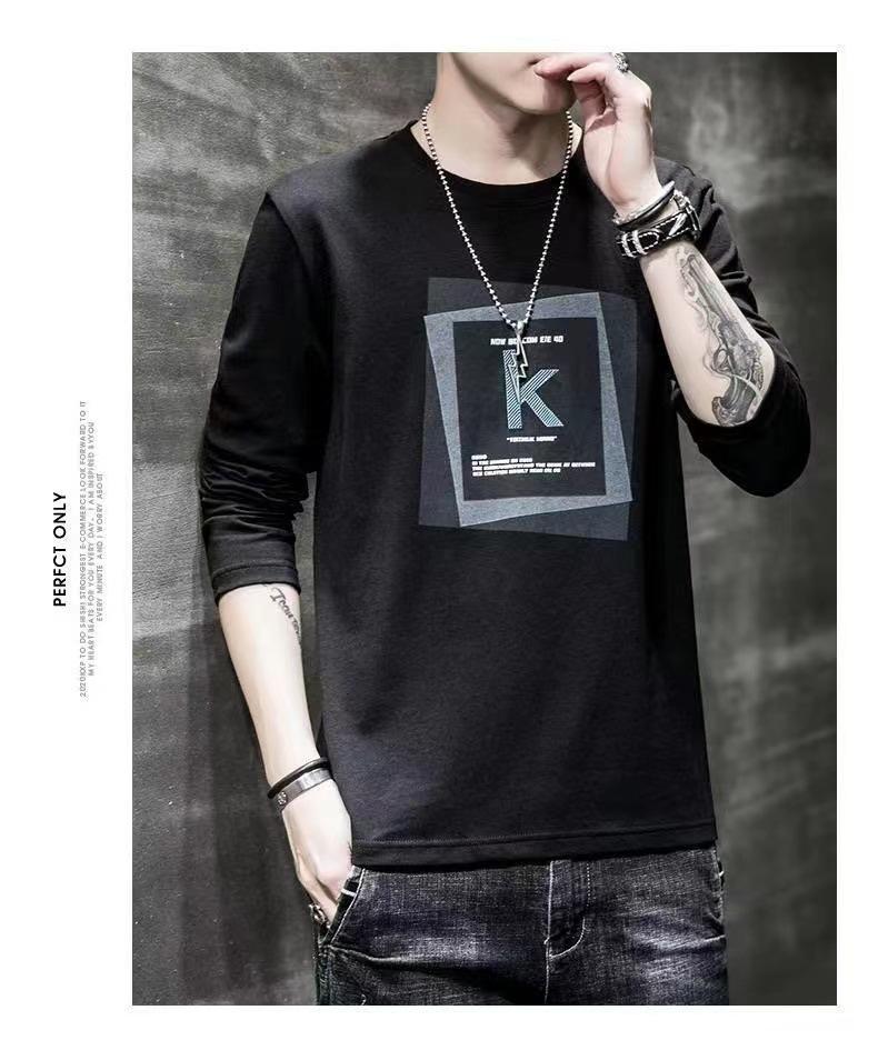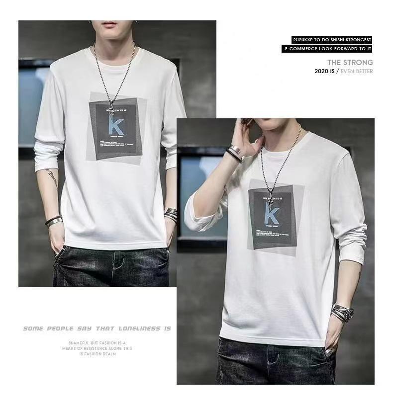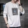 Camiseta masculina de manga comprida Primavera e outono nova moda slim-fit estampada camiseta base camisa outono roupas masculinas