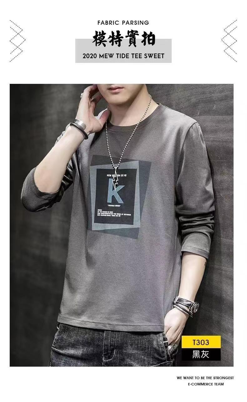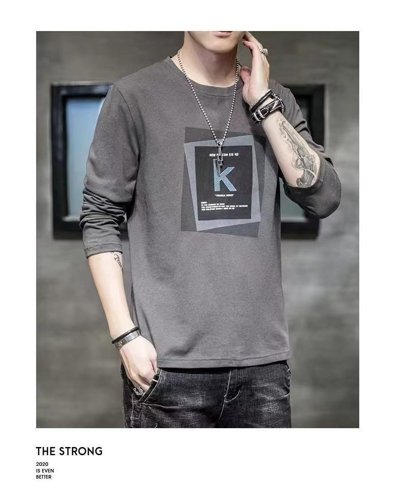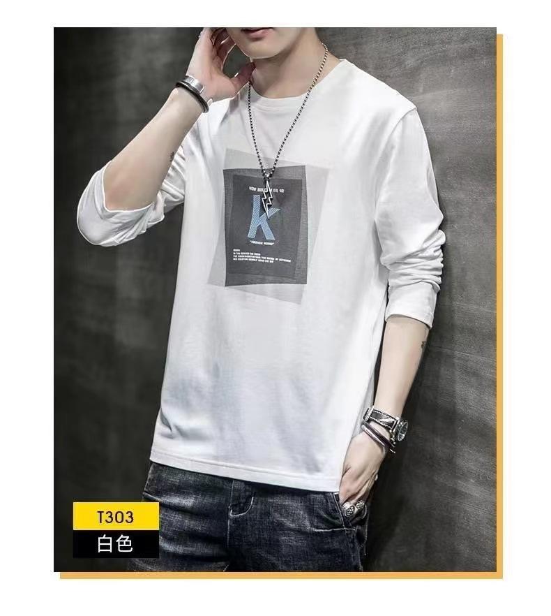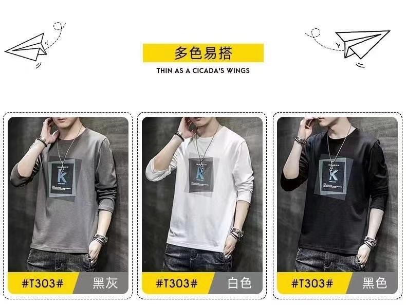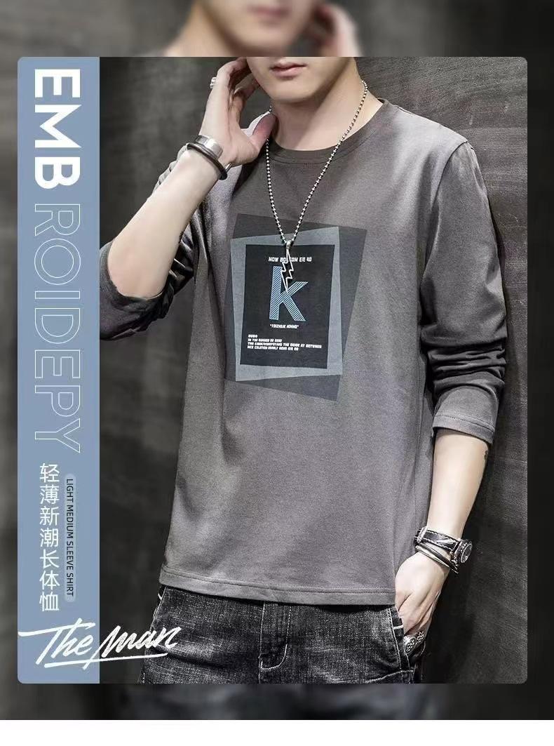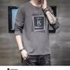 Camiseta masculina de manga comprida Primavera e outono nova moda slim-fit estampada camiseta base camisa outono roupas masculinas