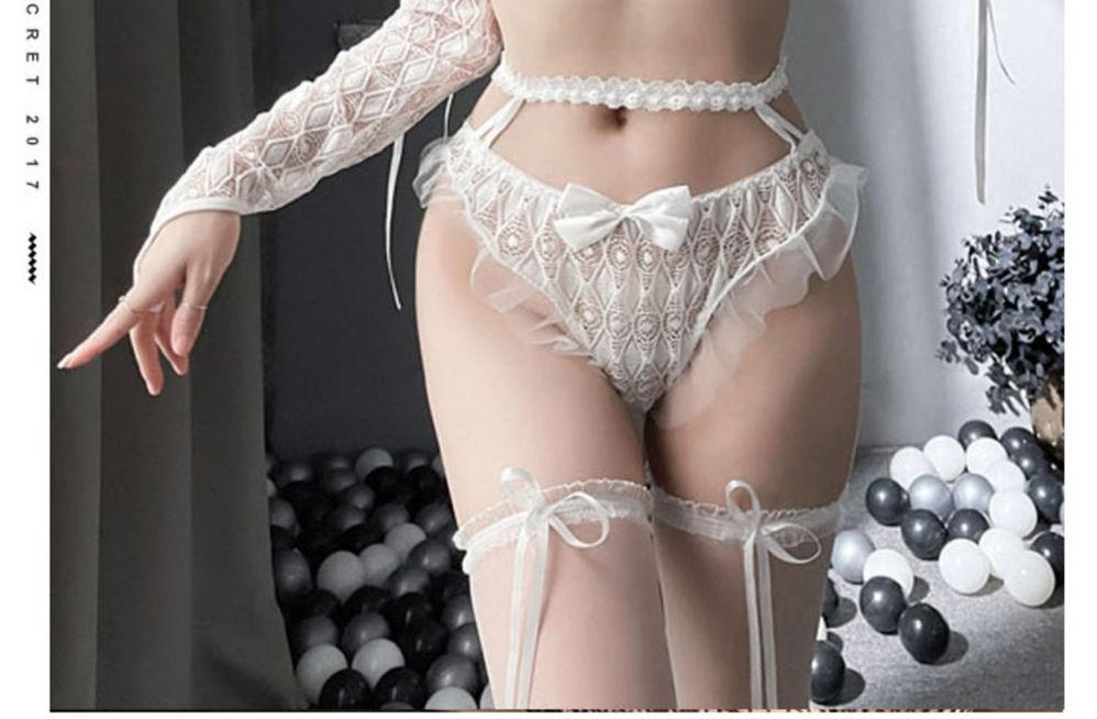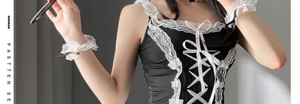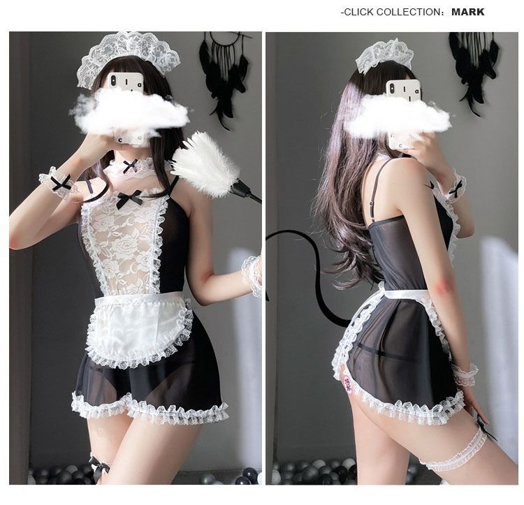 Pijama feminino sexy, camisola sexy de renda pura, conjunto de uniforme de flerte com perspectiva