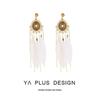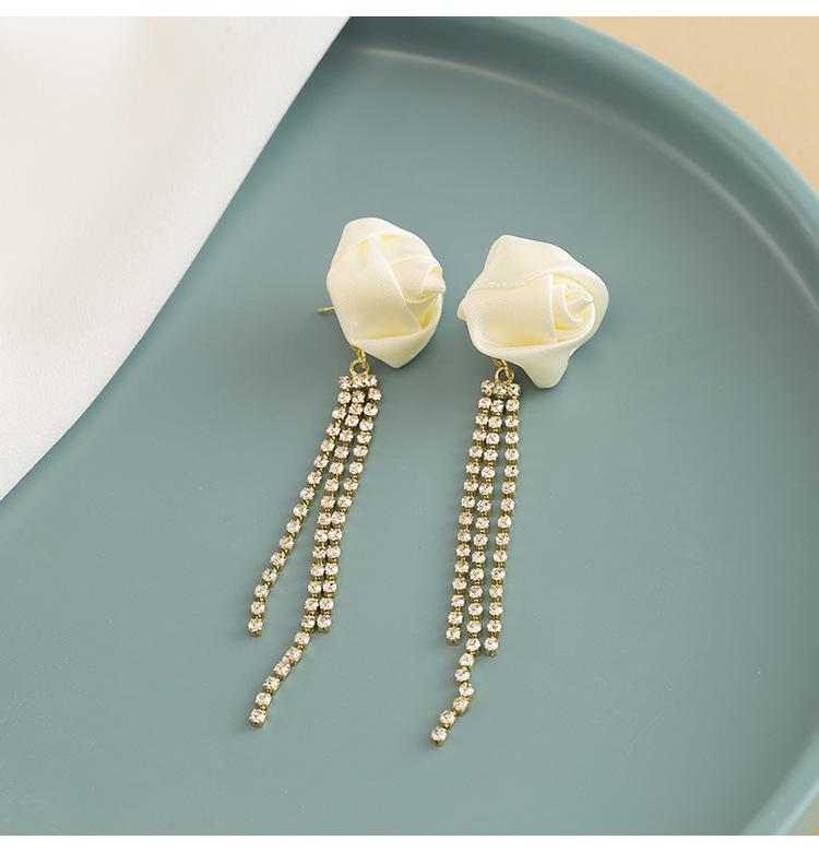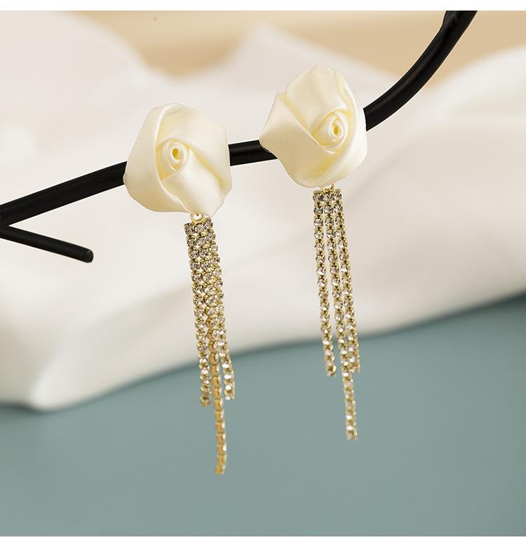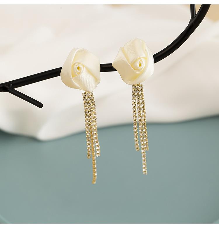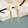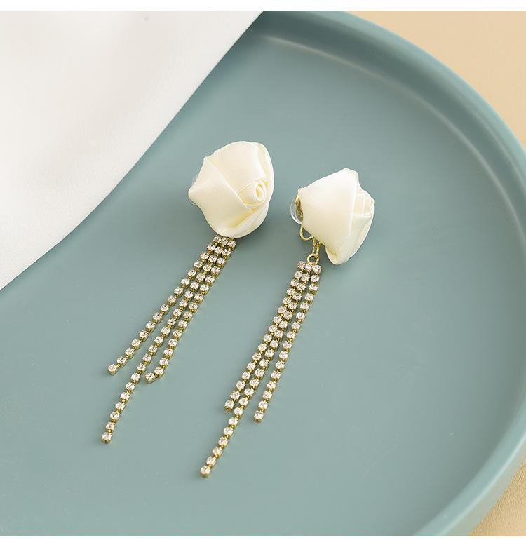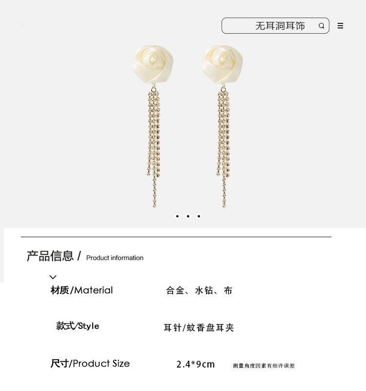 Brincos de borla de rosa branca, elegantes franceses, de alta qualidade, leves, luxuosos, longos, elegantes, clipe de orelha em espiral de mosquito, sem orelhas furadas