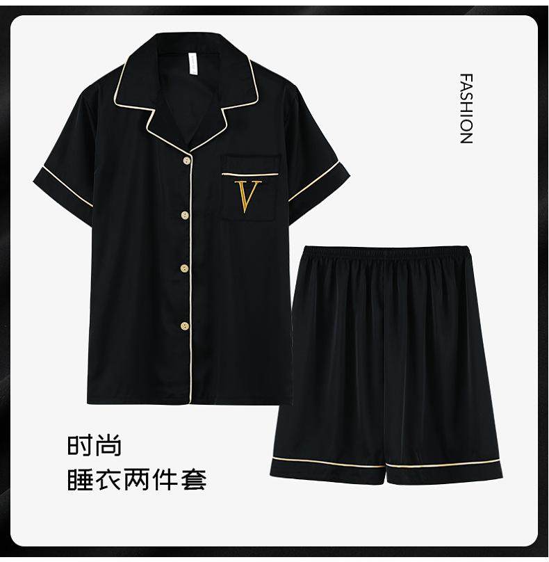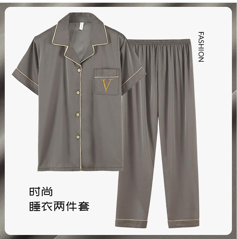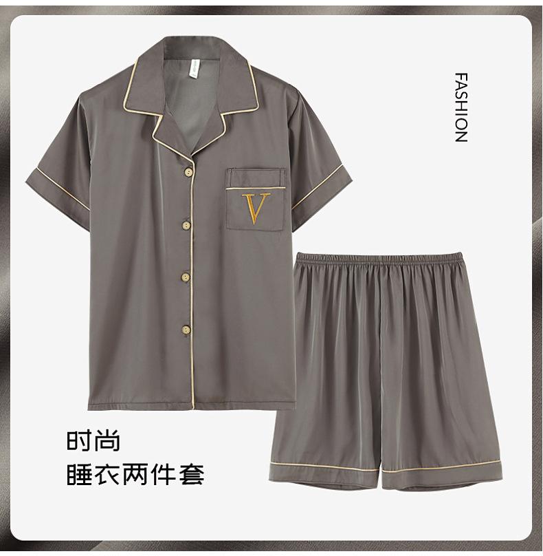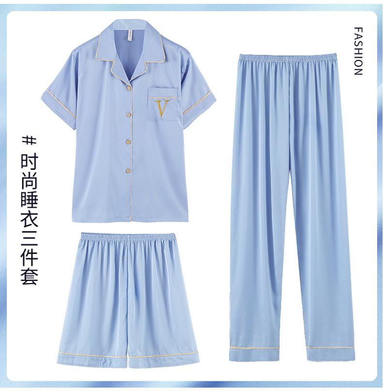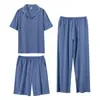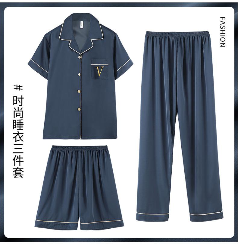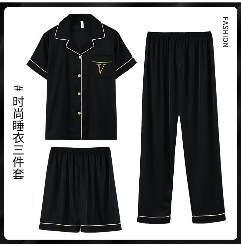 Pijama de verão masculino de seda gelada simples casual plus size juventude manga curta três peças solto fino homewear