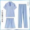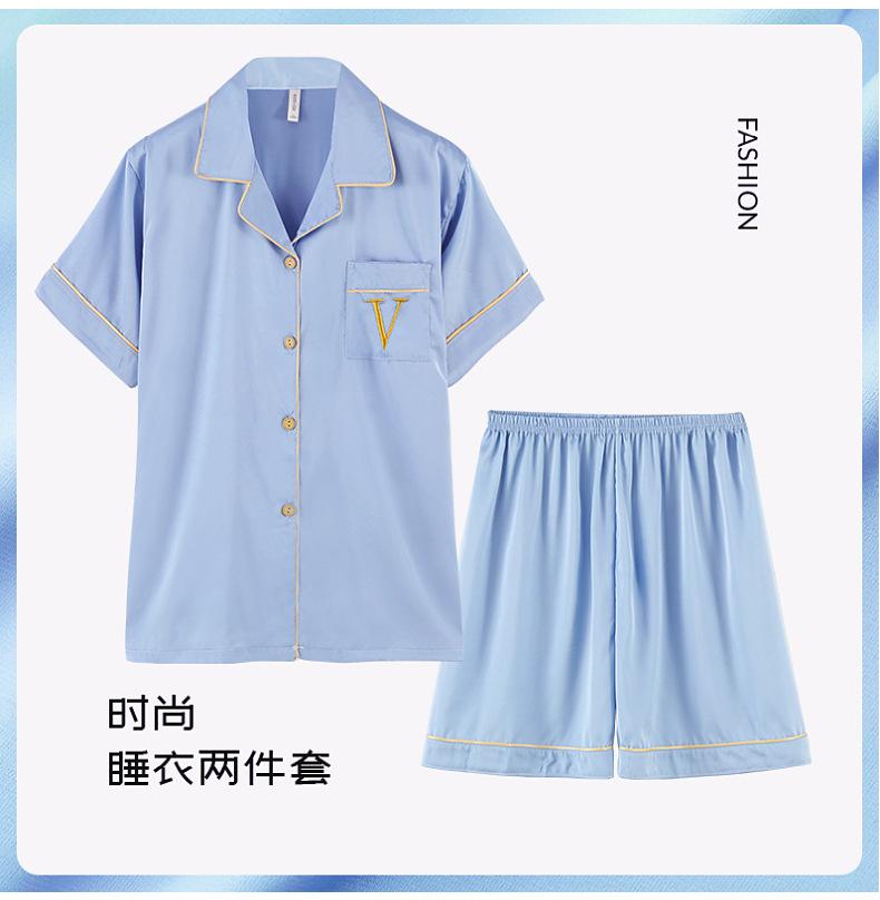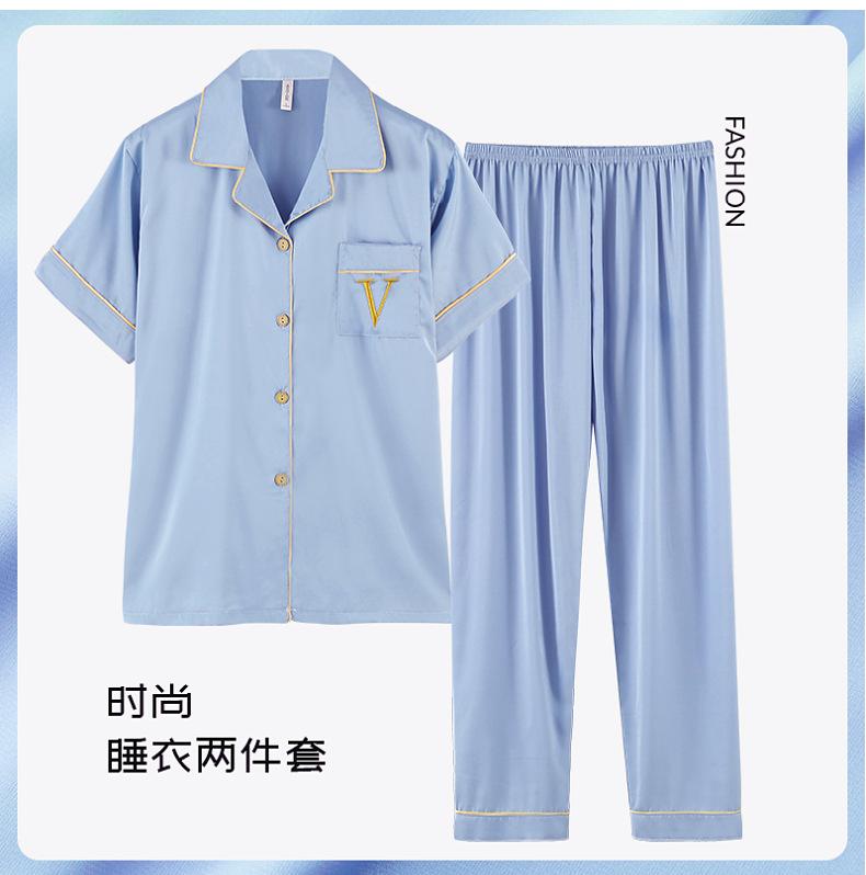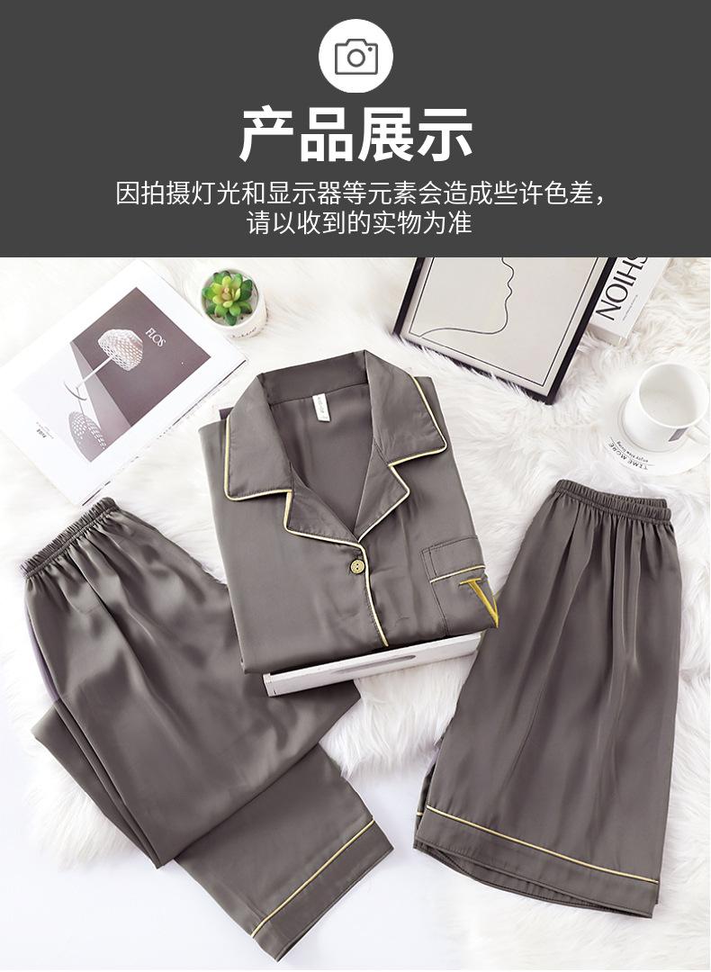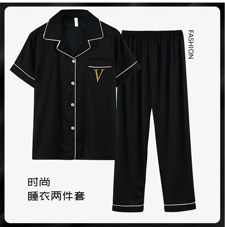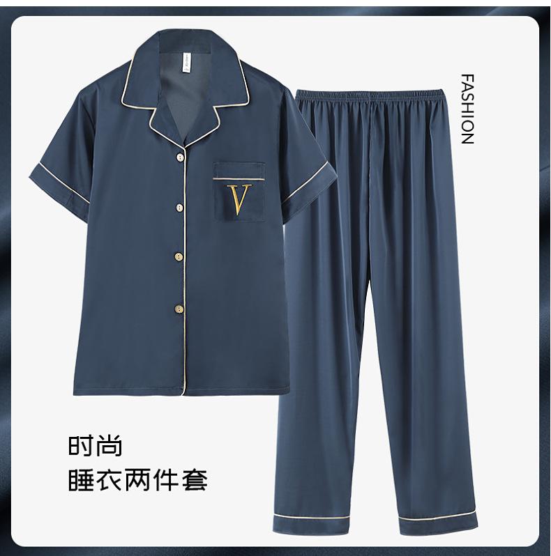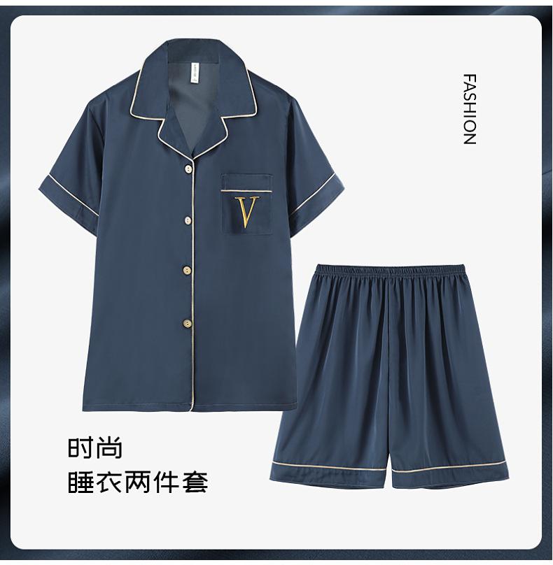 Pijama de verão masculino de seda gelada simples casual plus size juventude manga curta três peças solto fino homewear