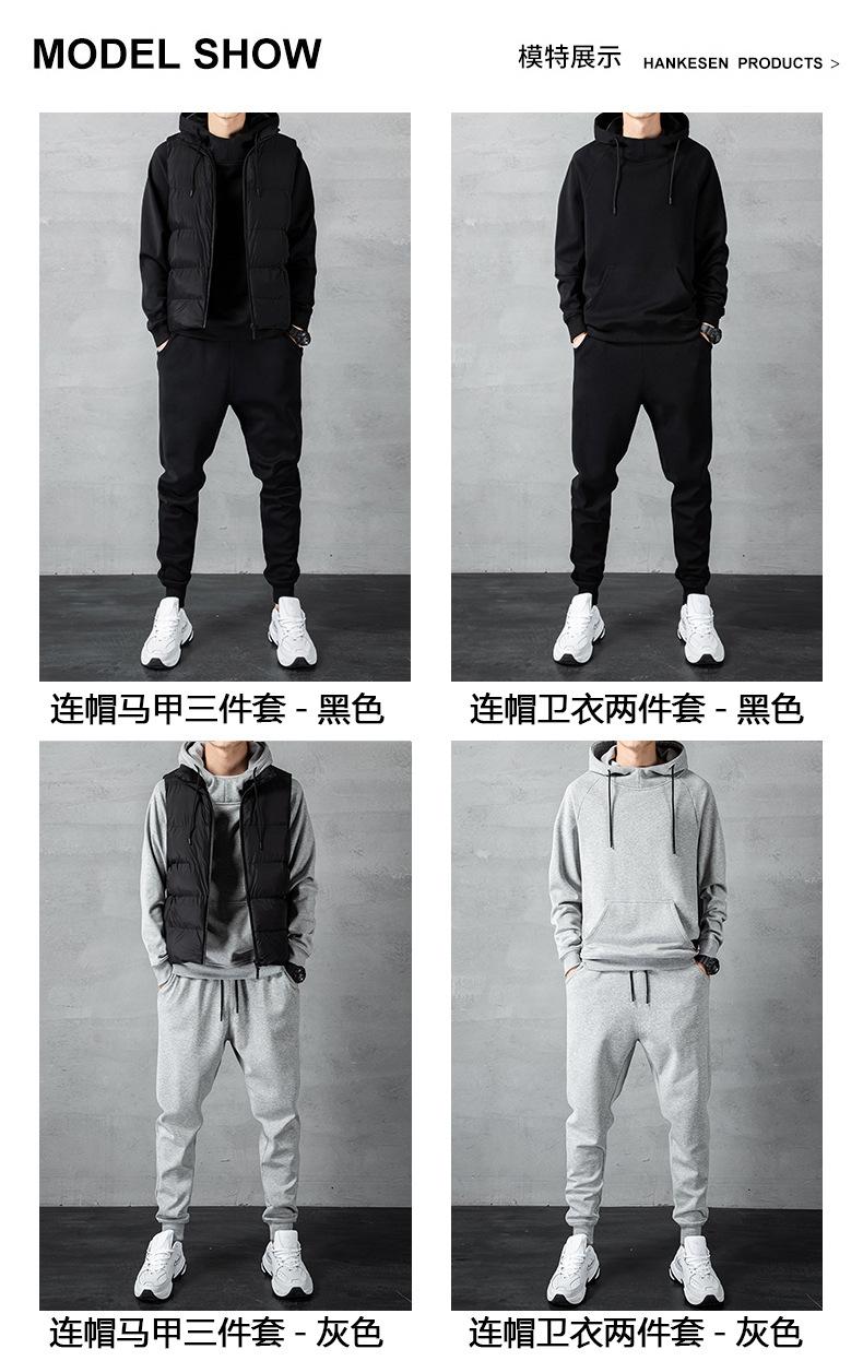 [fleece-lined three-piece set] hooded sweater vest suit-black, [fleece-lined three-piece set] hooded sweater v...