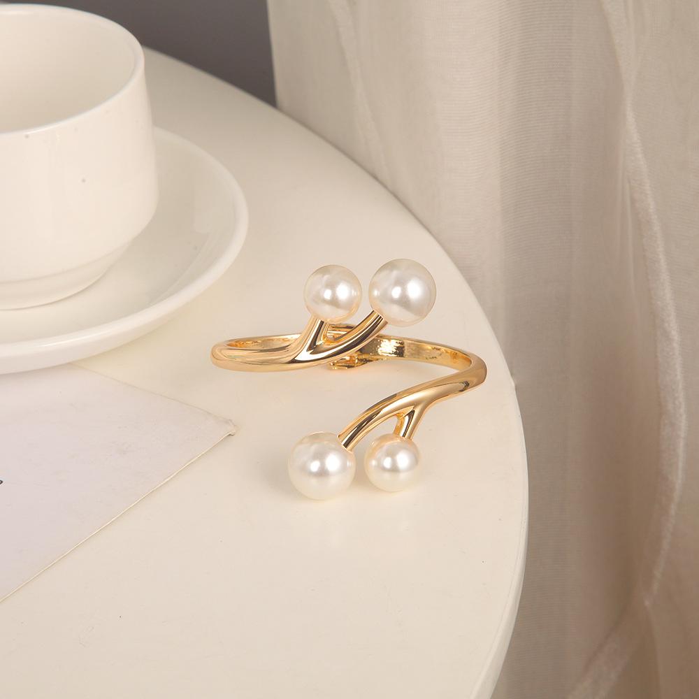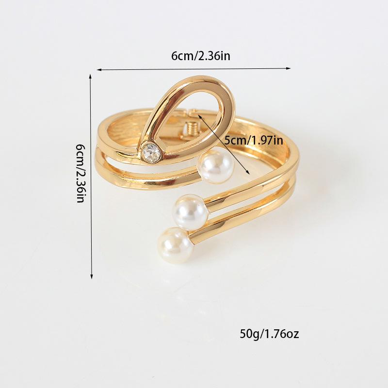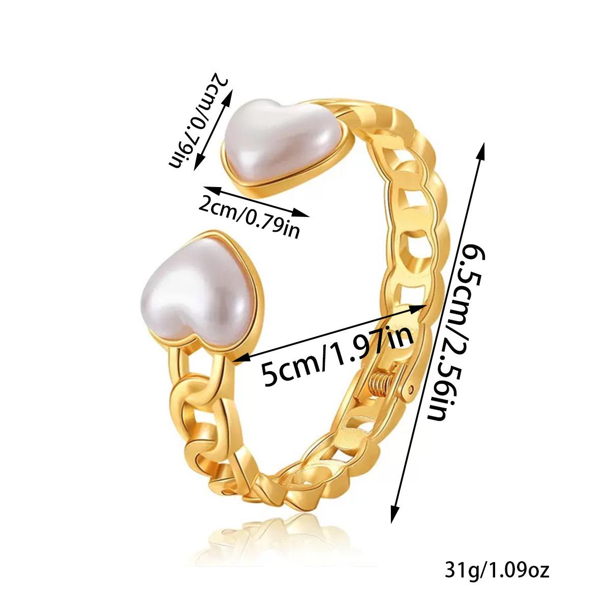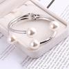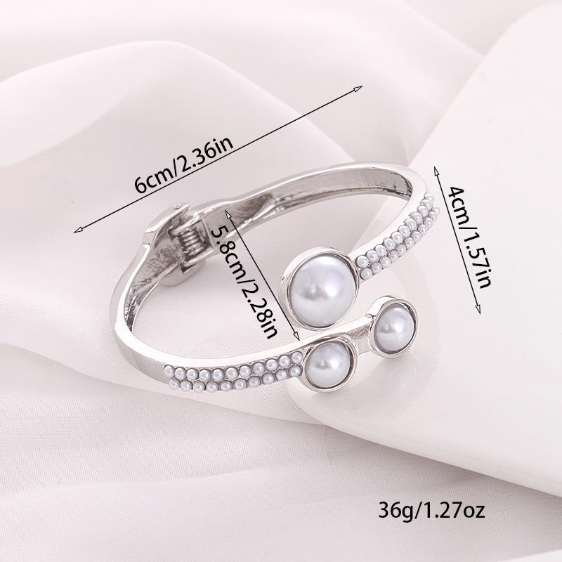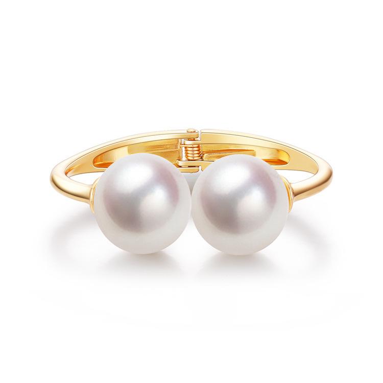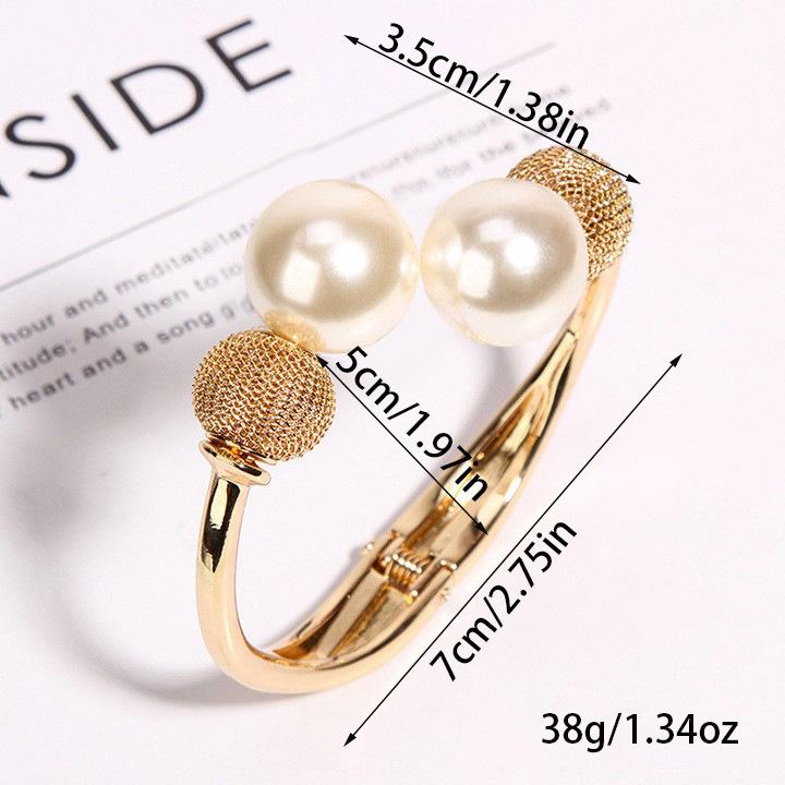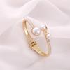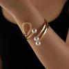 Pulseira de Pérolas Estilo Europeu e Americano Joias de Liga Metálica Pulseira de Camada Dupla para Mulheres Acessório de Moda Assimétrico Meio Aberto para o Dia a Dia