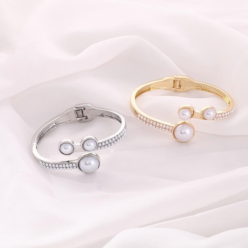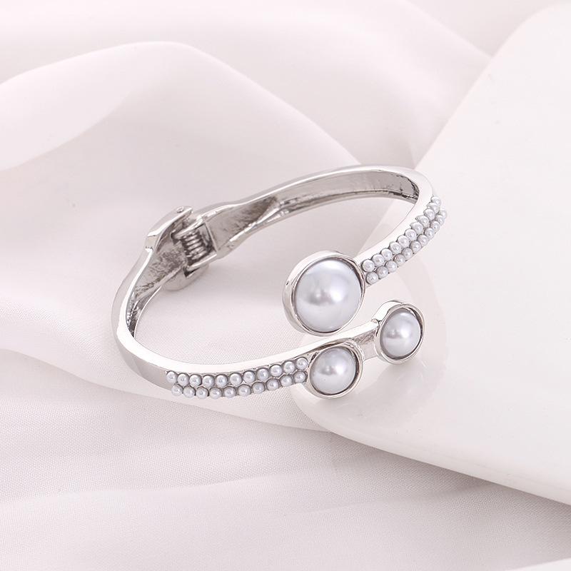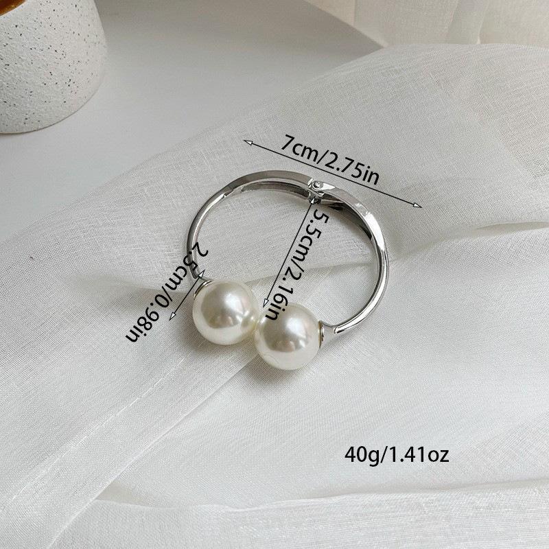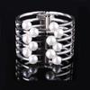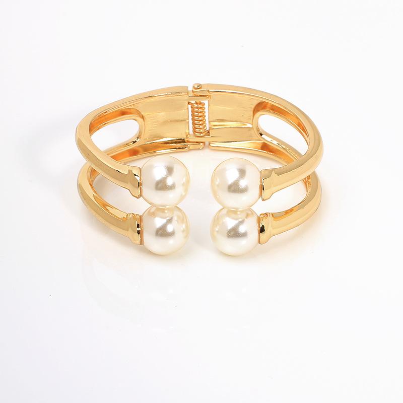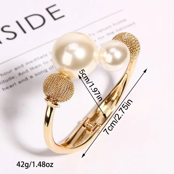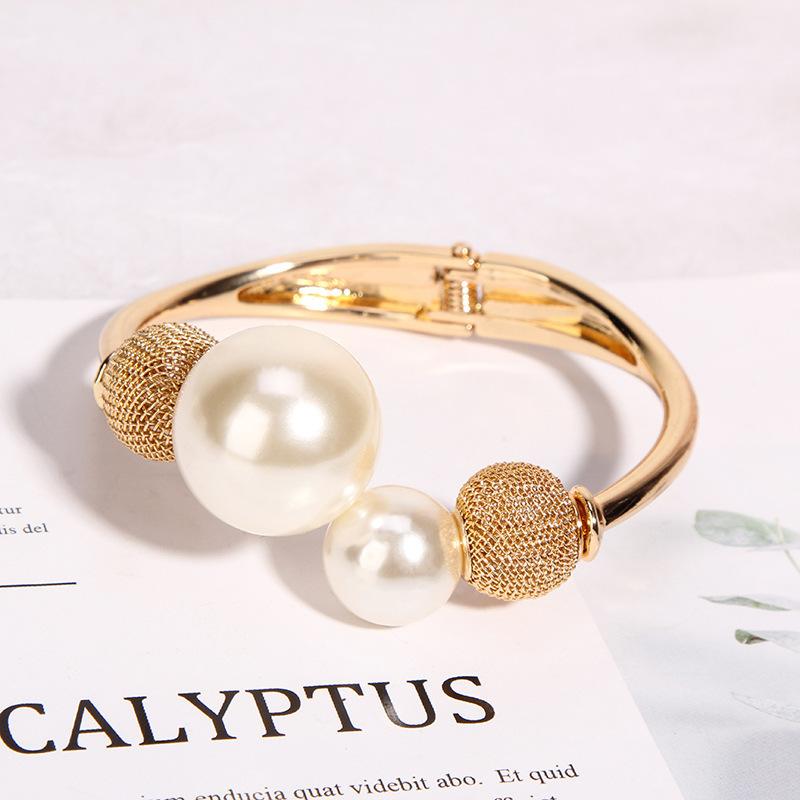 Pulseira de Pérolas Estilo Europeu e Americano Joias de Liga Metálica Pulseira de Camada Dupla para Mulheres Acessório de Moda Assimétrico Meio Aberto para o Dia a Dia