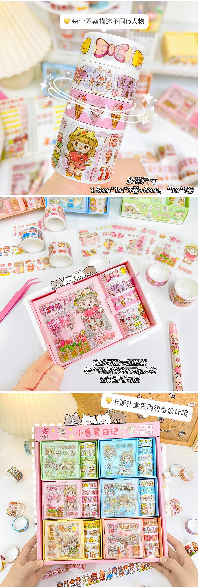 Fita de conta de mão de crianças bonito conta de mão material adesivo caixa de conjunto de menina coração e fita de papel conta de mão adesivo material adesivo