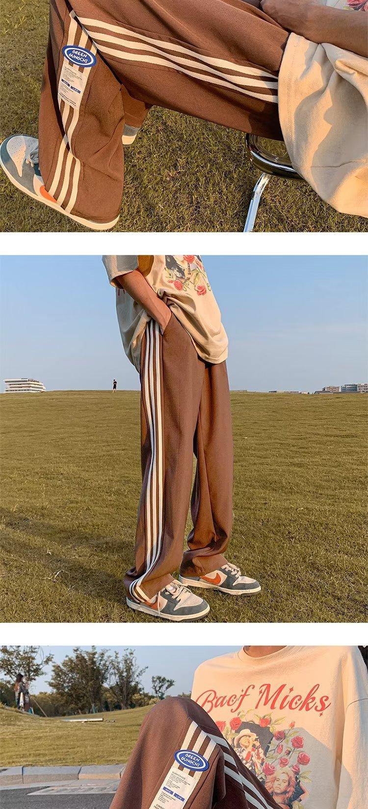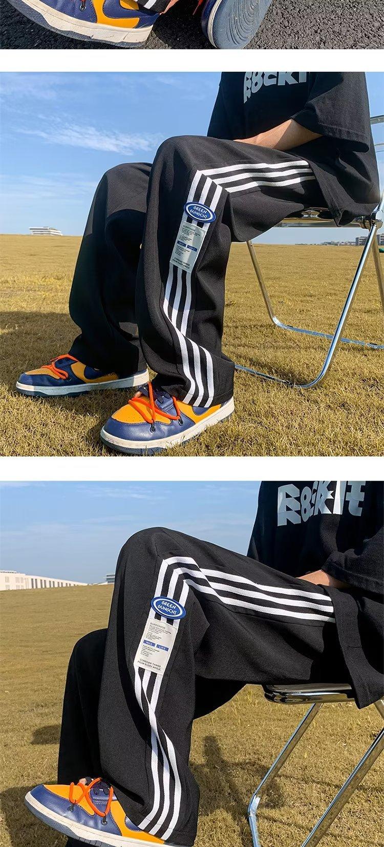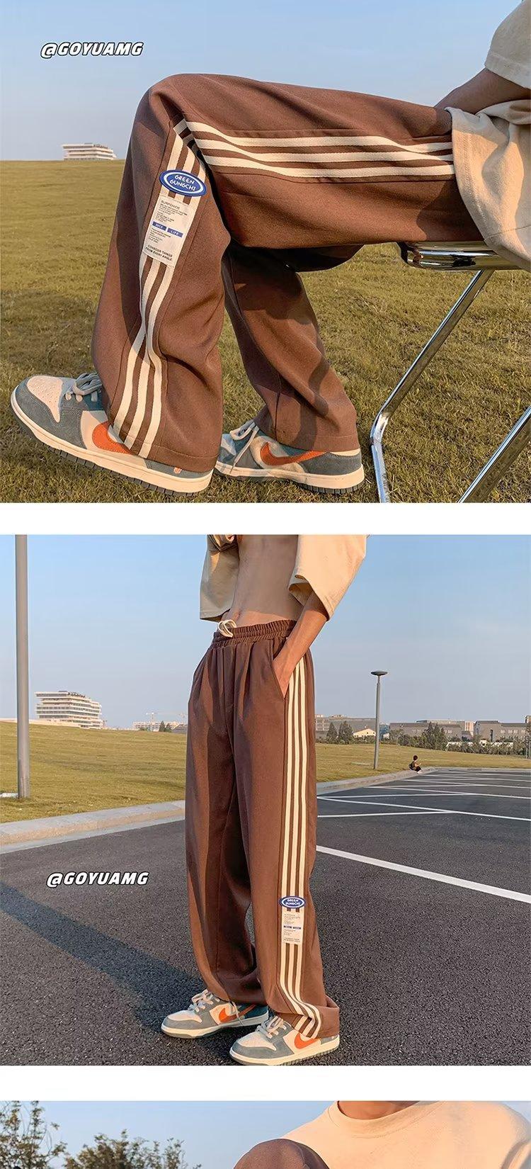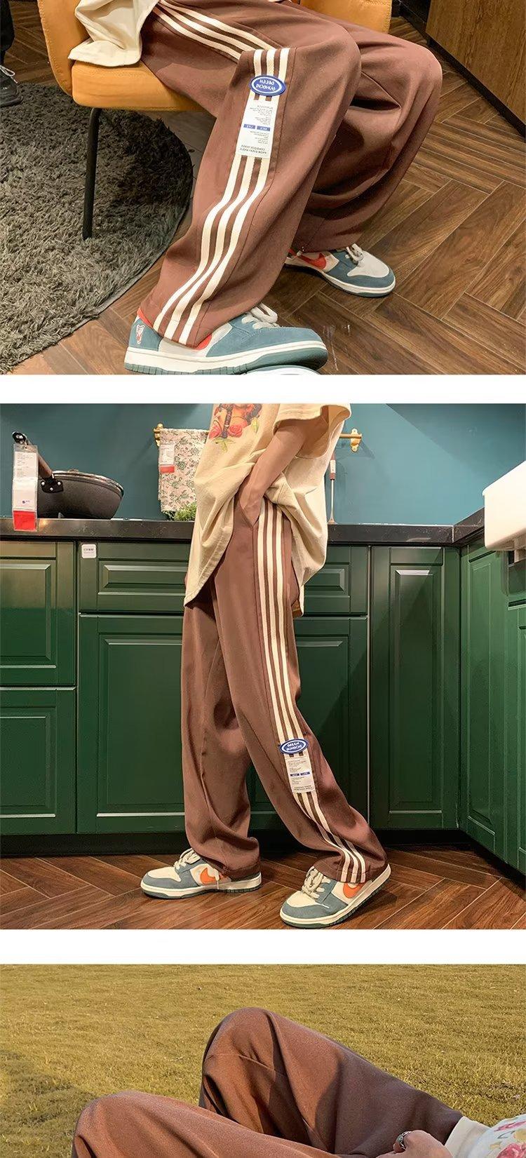 Compre Calças Masculinas Verão Fina Listrada Calças Esportivas Soltas Retas Larga Perna Casual Calças Retrô High Street vibe Moda no atacado no Joom.pro