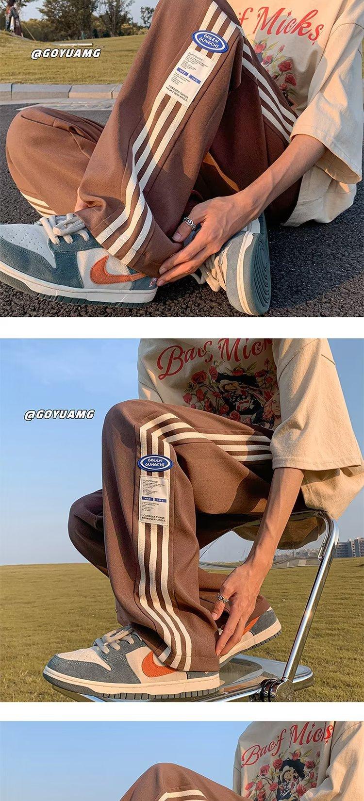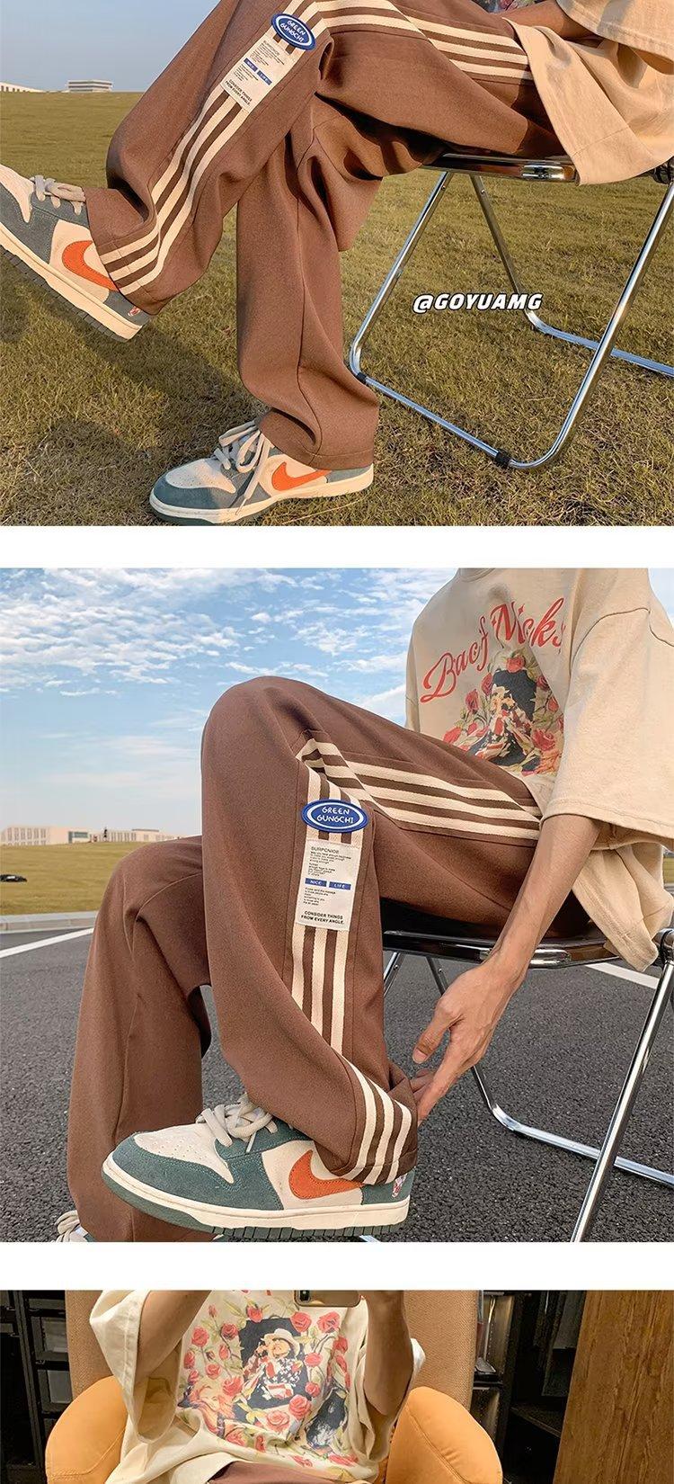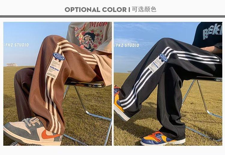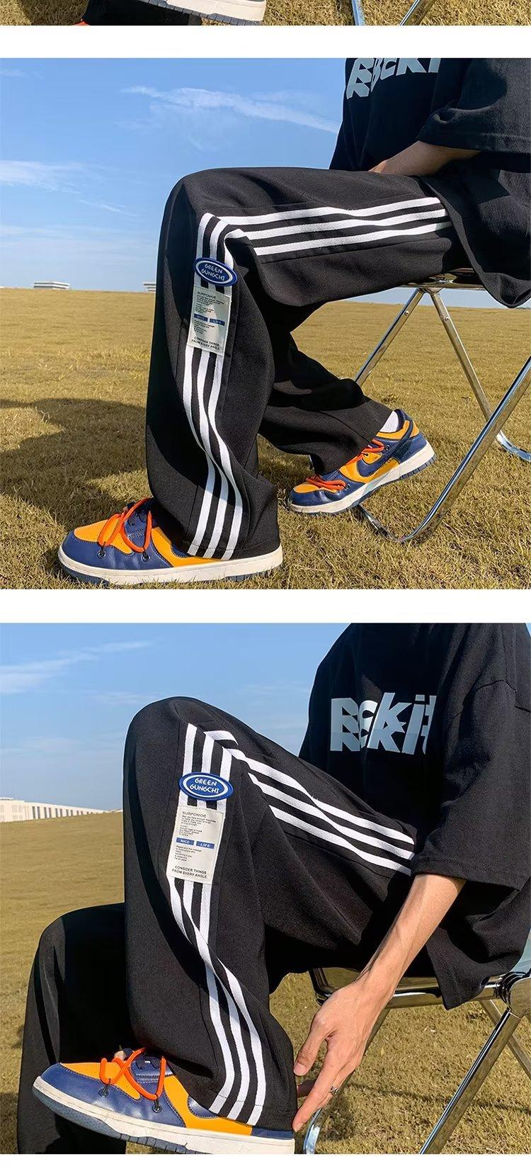 Compre Calças Masculinas Verão Fina Listrada Calças Esportivas Soltas Retas Larga Perna Casual Calças Retrô High Street vibe Moda no atacado no Joom.pro