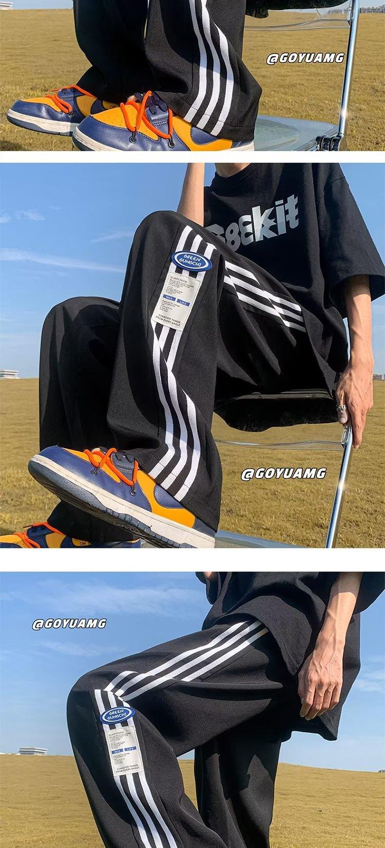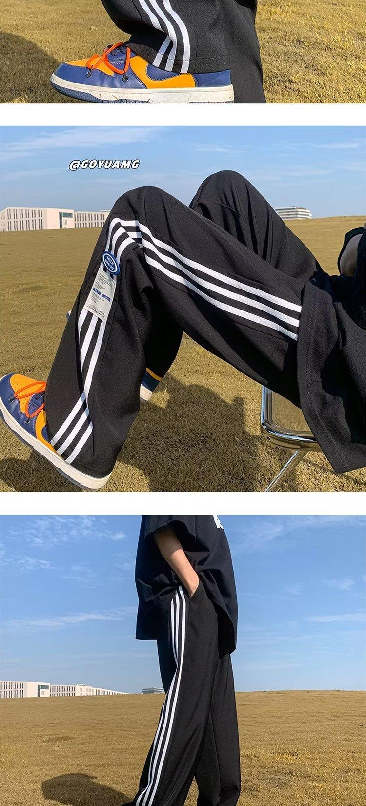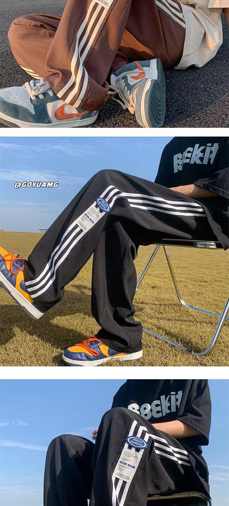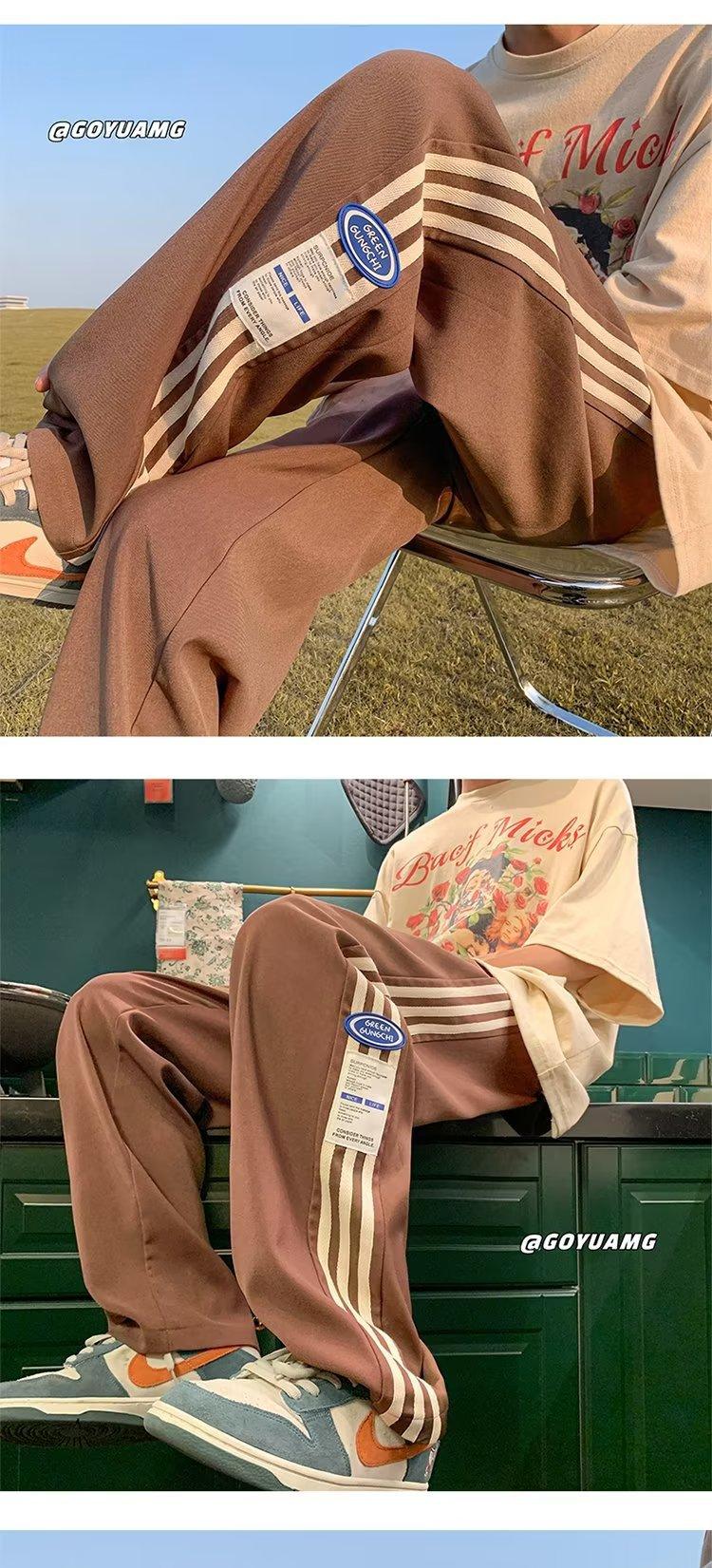 Compre Calças Masculinas Verão Fina Listrada Calças Esportivas Soltas Retas Larga Perna Casual Calças Retrô High Street vibe Moda no atacado no Joom.pro