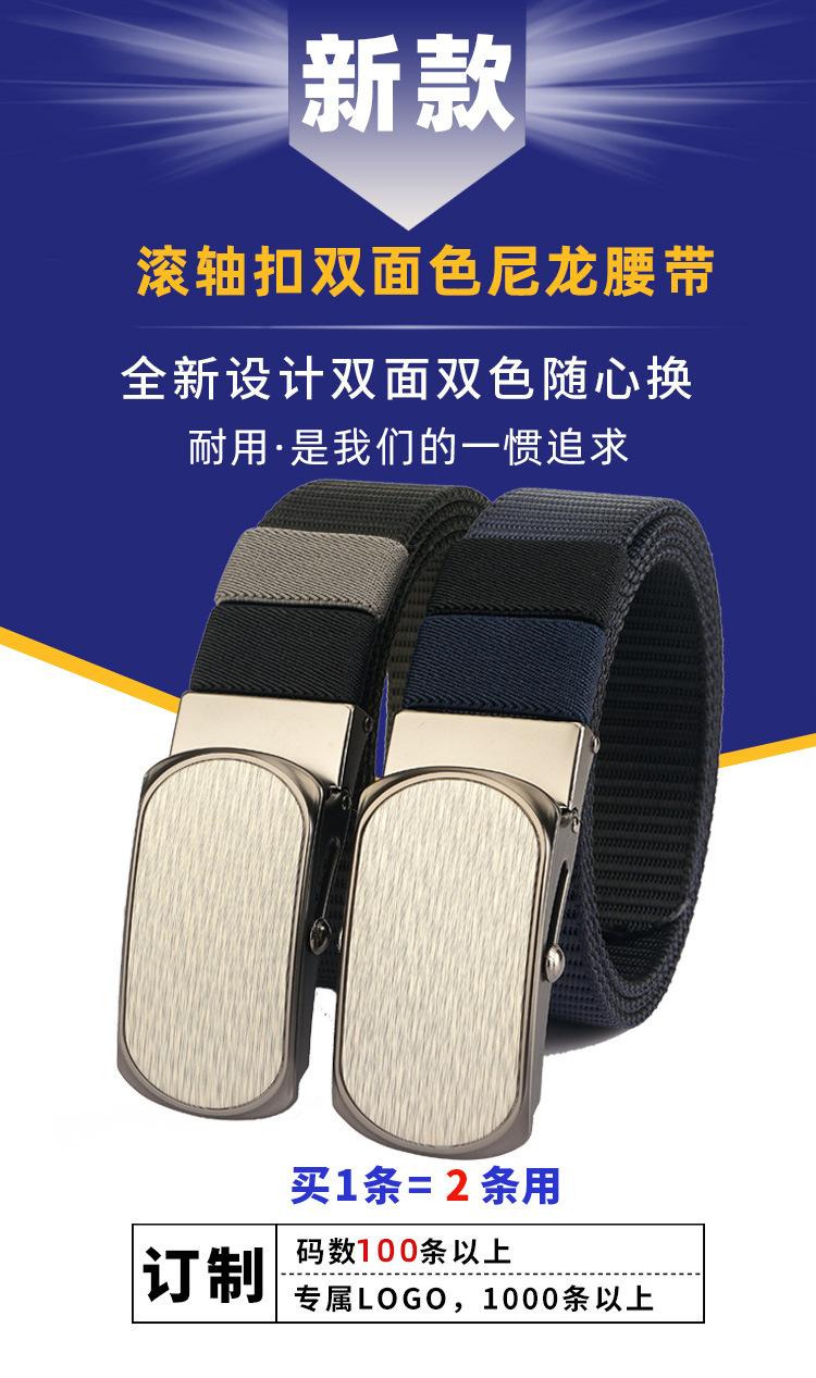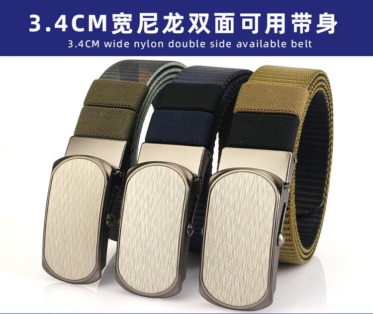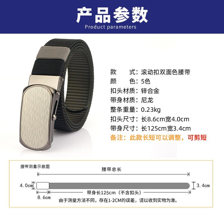 Nova Lona Masculina Cinto de Nylon 3,5 centímetros Fivela de Rolo Automática Dupla Face Cor Espessa Tanque Padrão Cinto Não Perfurado