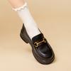 Sapatos Pequenos de Couro com Fivela de Metal para Mulheres, Couro Genuíno Novo Estilo Coreano Sapatos de Salto Único, Estilo Japonês Mocassins JK para Mulheres, Salto Médio